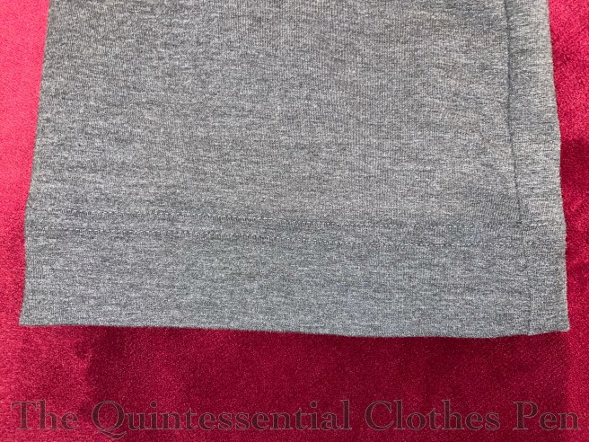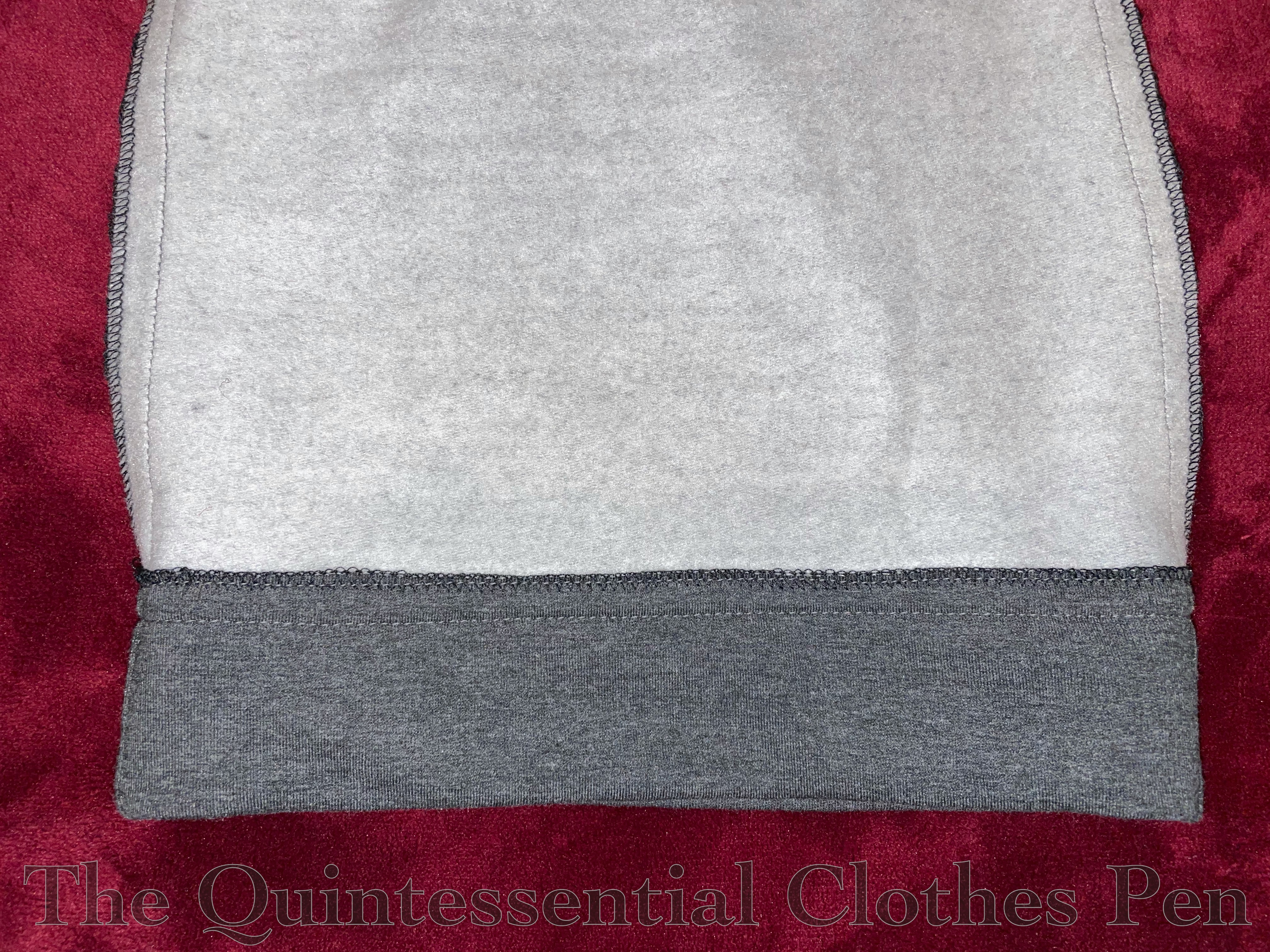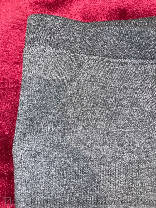 I didn’t track how long taking the pattern took, but I did track the construction: these new pants took just 2.5 hours–a short project by my usual historical dress standards! I used 1 ¼ yards of the Bamboo/Cotton Stretch Fleece and ½ yard of Bamboo/Cotton 2 x 2 Ribbing in matching grey, also from Blackbird Fabrics.