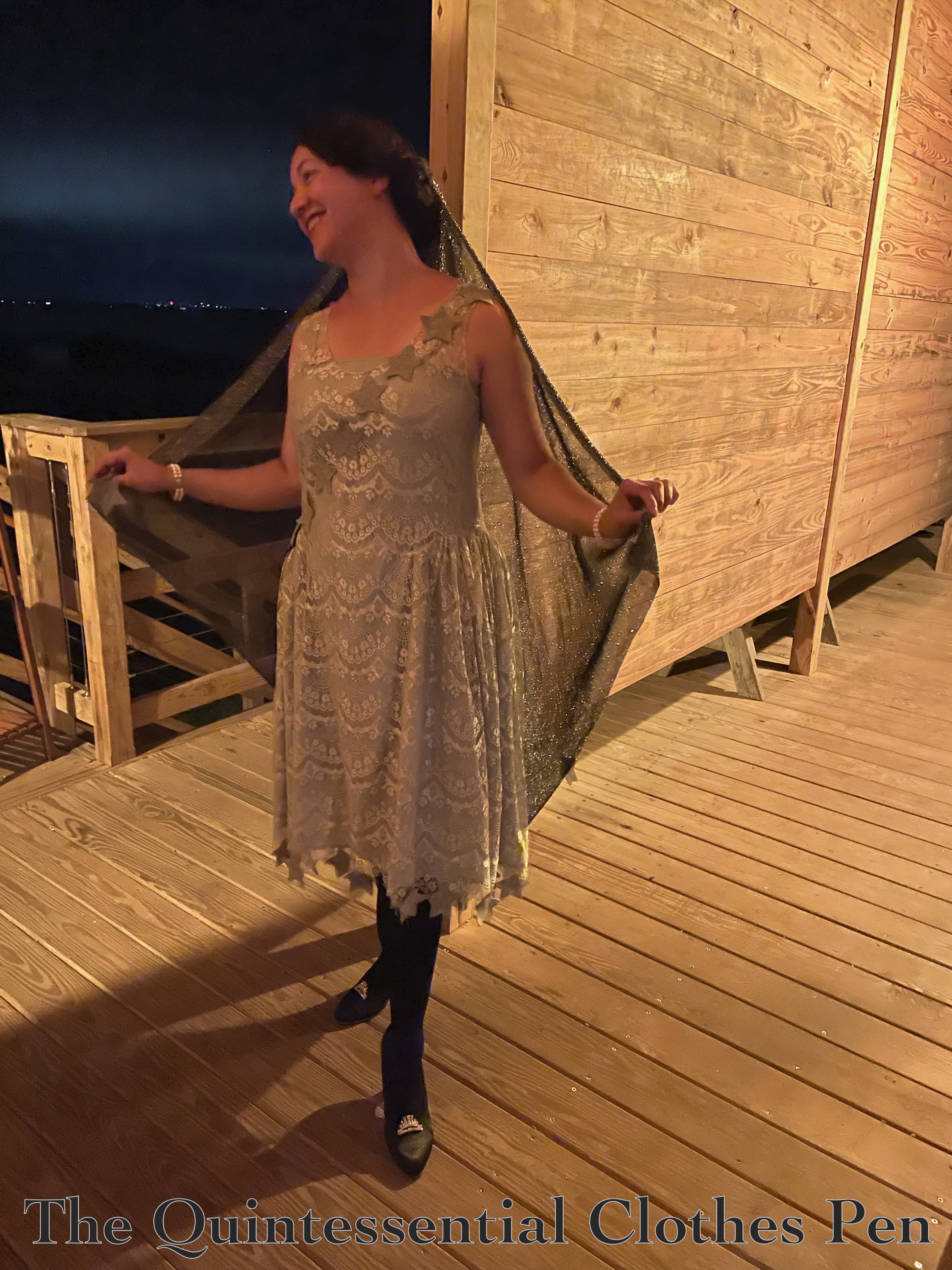 The weekend included other opportunities for fun photos, as well. The evening dance had a masquerade theme, for which I turned my 1926 Silver Robe De Style into a star-themed fancy dress outfit. There’s a whole post about the fancy dress inspiration that you can read here.