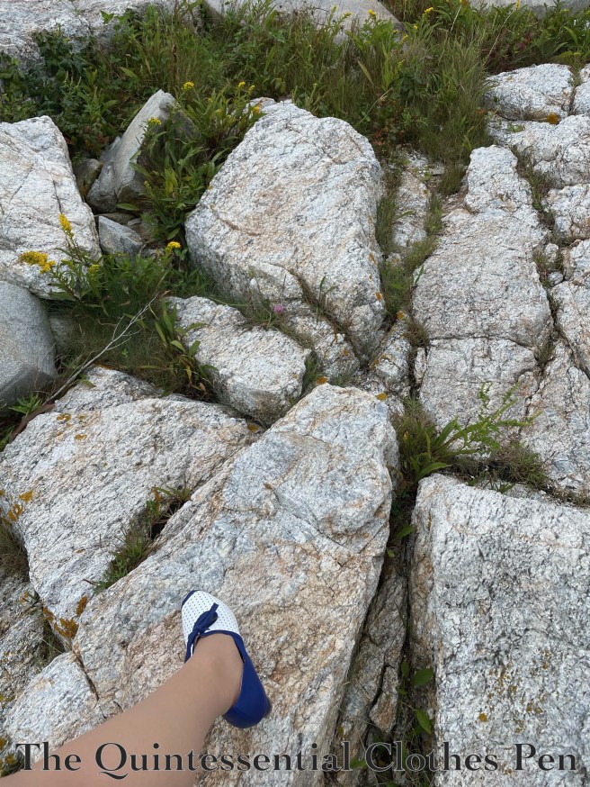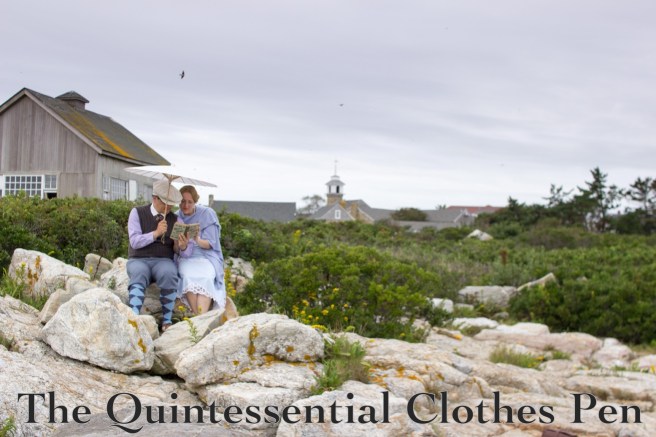 My shoes had no trouble on the rocks! I did tread carefully, for safety and so I didn’t bang up my shoes unnecessarily, but I enjoyed proving to myself (as I have before) that one can clamber even in fabulous historical shoes.
