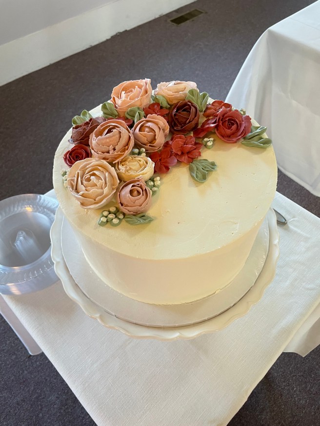 The beautiful and delicious cake was made for us by a local bakery, Dolce Amar. Friends contributed flowers and vessels to add to our springtime theme.