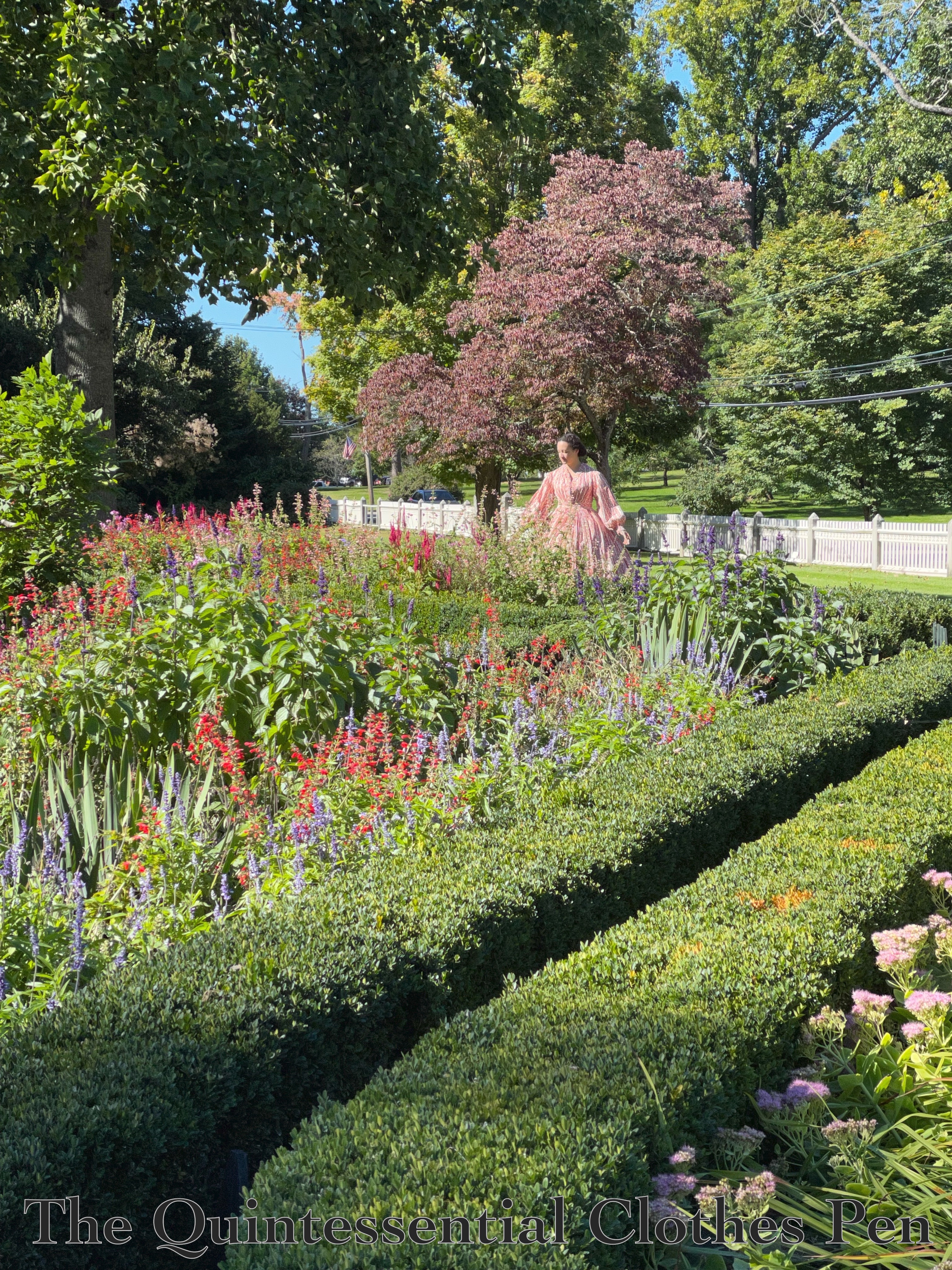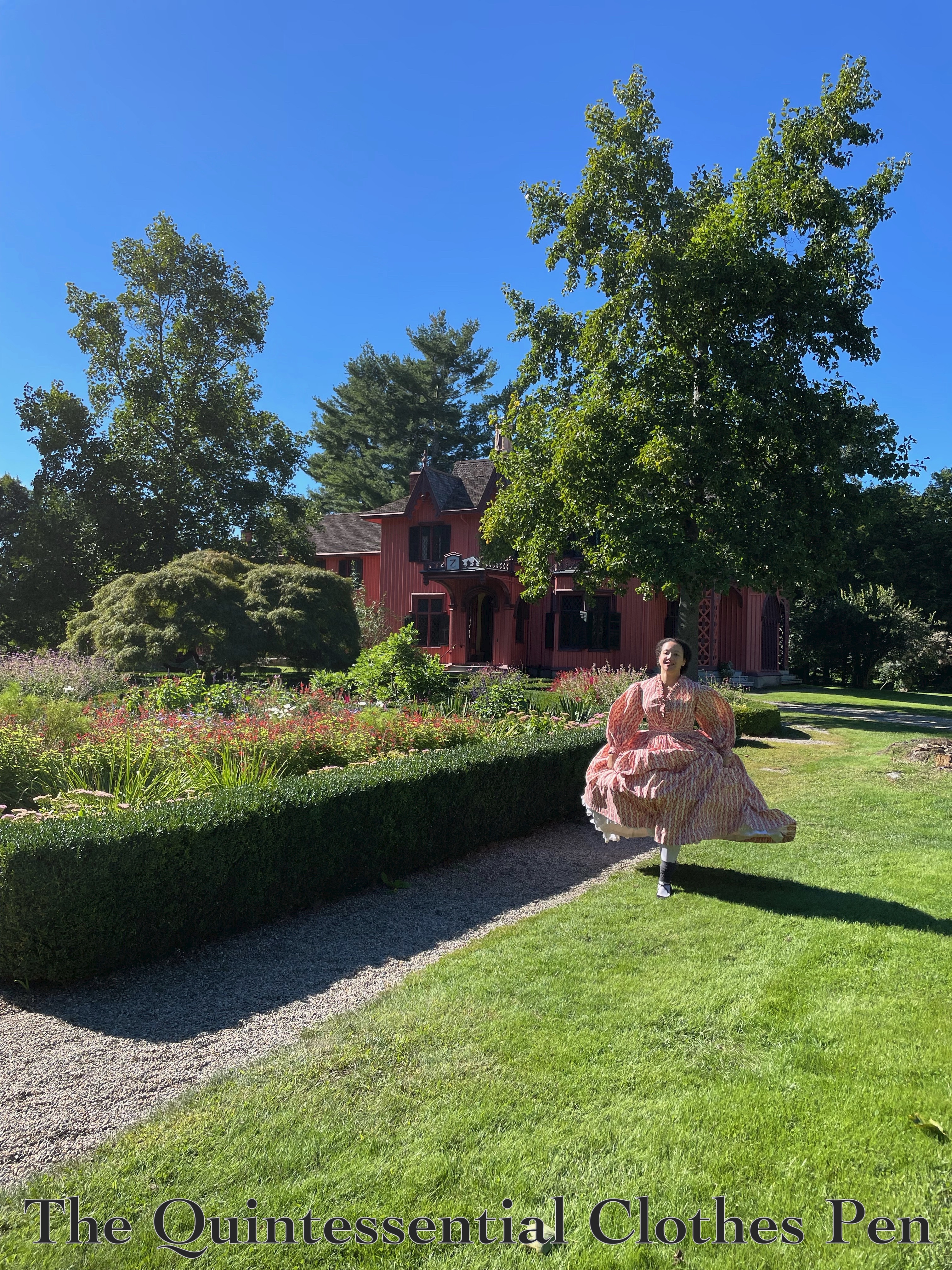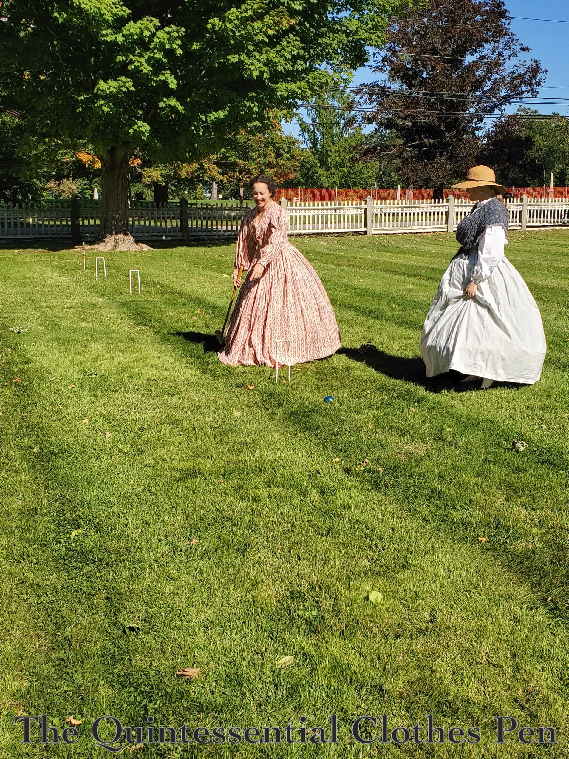 In fact, the croquet ball whack didn’t stop me from enjoying the gardens in Sophie, my 1861 reproduction cotton print dress.