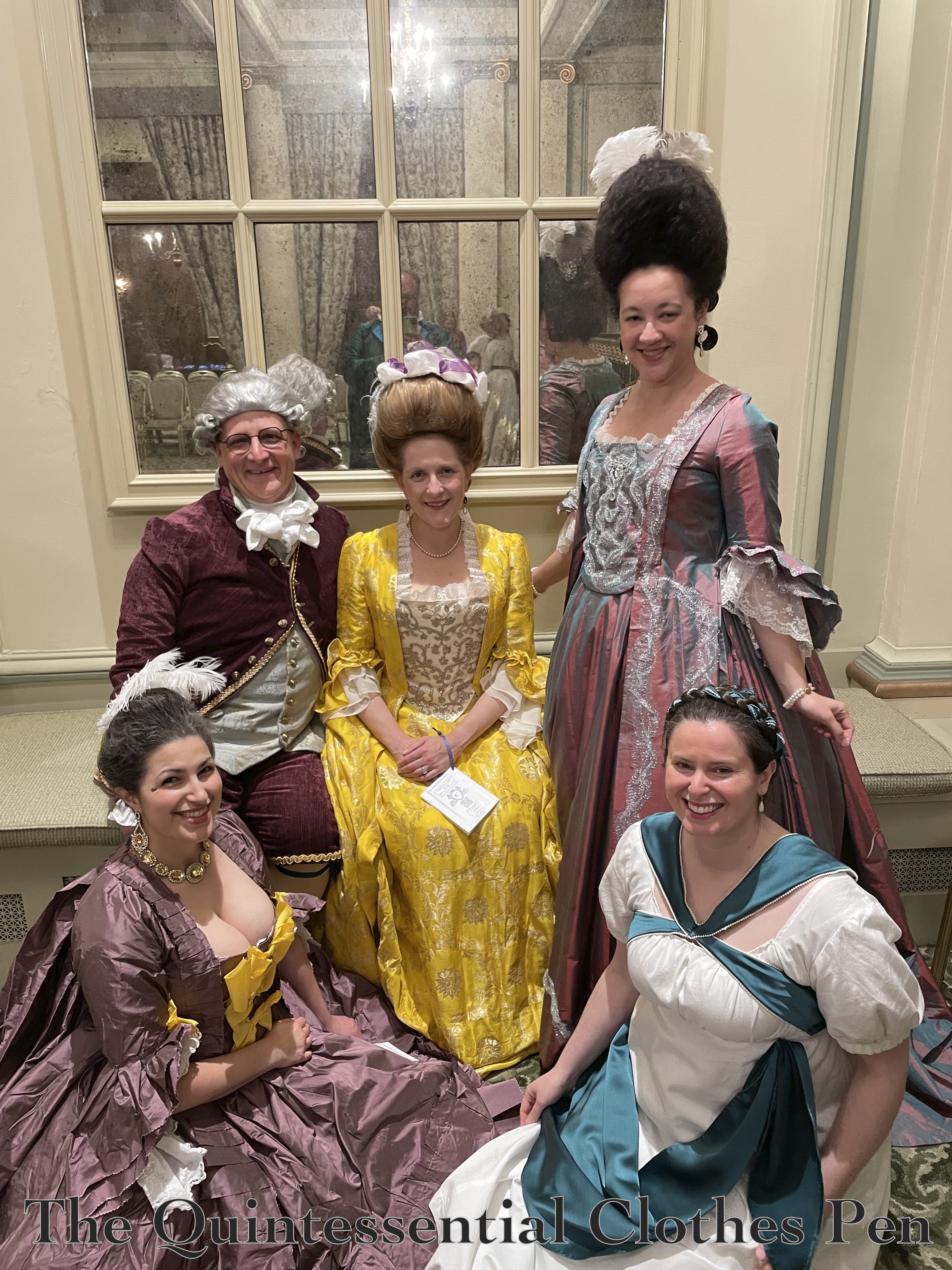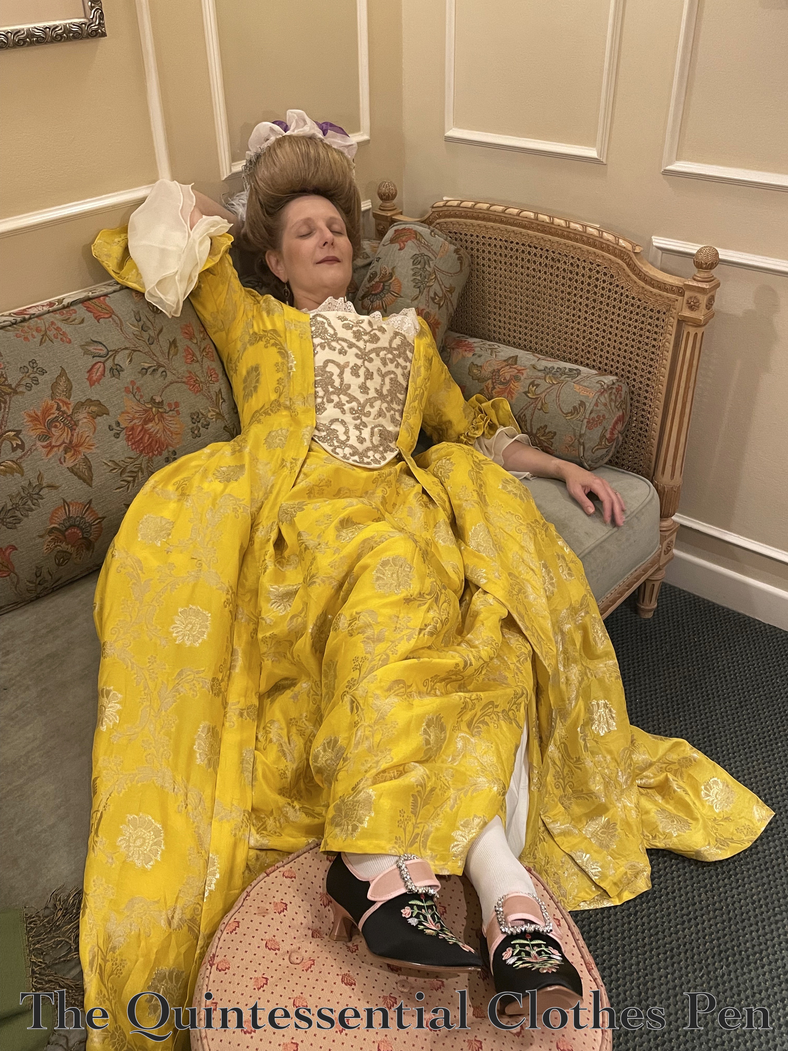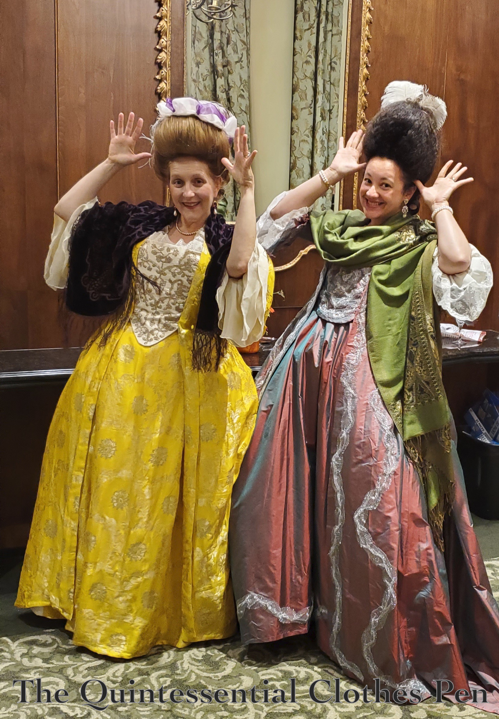 I am finally ready to share a full set of photos of the new Yellow Sacque and its friend, my older Versailles sacque (all of the construction details for these dresses can be found by clicking the links)! The two dresses had a joyful outing together at an event last year. This post is going to share about the event itself as well as photos and recollections.