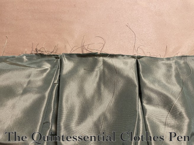2 – I removed the top portion of the muslin flat lining from the skirt, leaving only about ⅓ of it around the bottom to support all of the trim and provide a facing for the silk. When I made the skirt flatlining the entire thing felt supportive, but I realized that it was unnecessarily heavy and made the stacked box pleats at the waist extra thick and annoying to deal with. So no more of that on this second version of the skirt!