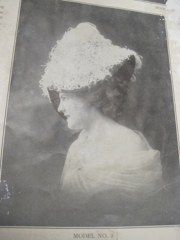 I’m calling this hat a “mushroom” hat because it is my goal to make the crown roomy about the head and puffy in the crown, like a mushroom top! You can see this mushroom-y detail in the images below: look at how the head size opening is often bigger than the head! Given that the head size opening needs to be big, one challenge I will face is figuring out how to make the thing stay up on my head and not fall down over my face. I’m not sure big hair will be enough… That’s something I’ll have to determine once the hat is complete. I might have to use some sort of bandeau inside of the hat to support it. Bandeaus are often used to perch hats on the head, especially in periods like the 1870s and last quarter of the 18th century, but it seems like a practical solution to this 1912 hat perching problem, also! I’ll have to let you know how the bandeau situation turns out.