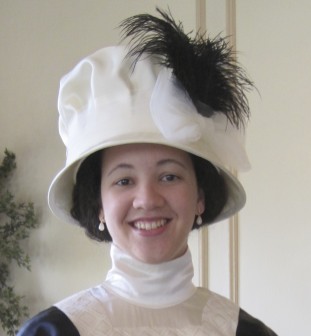 Gown and hat with (unbuttoned...) white kid opera gloves. I'm so pleased with the overall effect! Unfortunately, I don't have pictures of the back. There are cool details back there, so another fashion shoot will be required in the future...