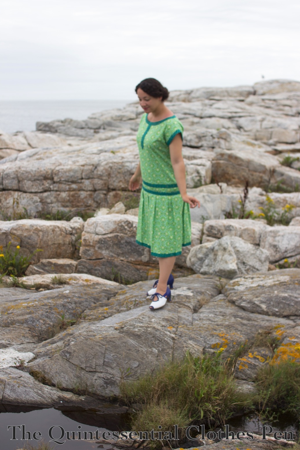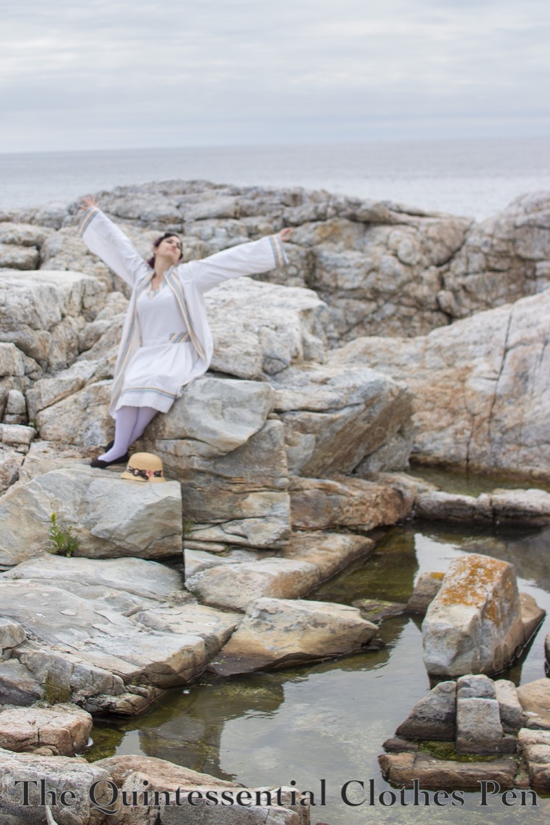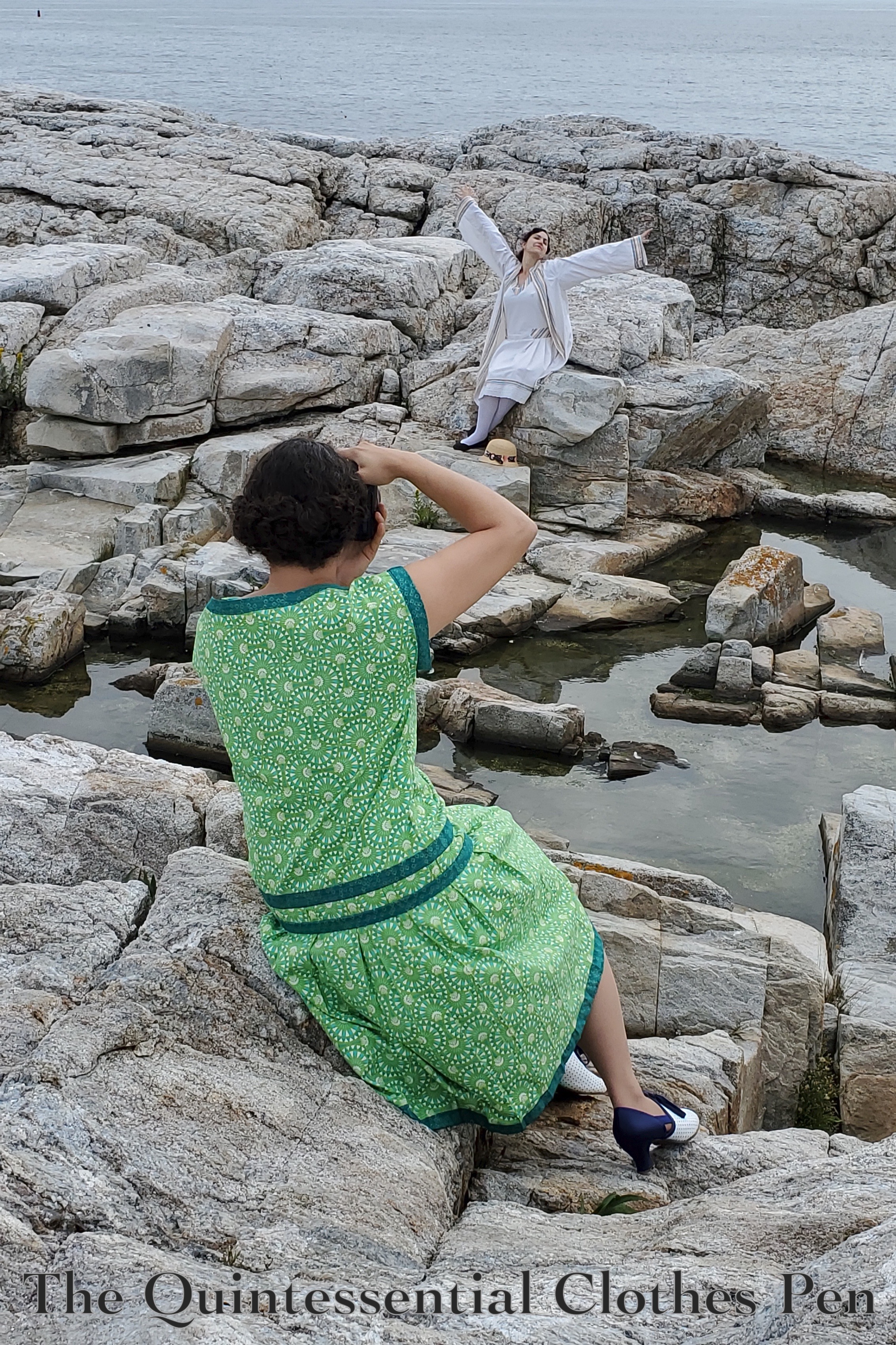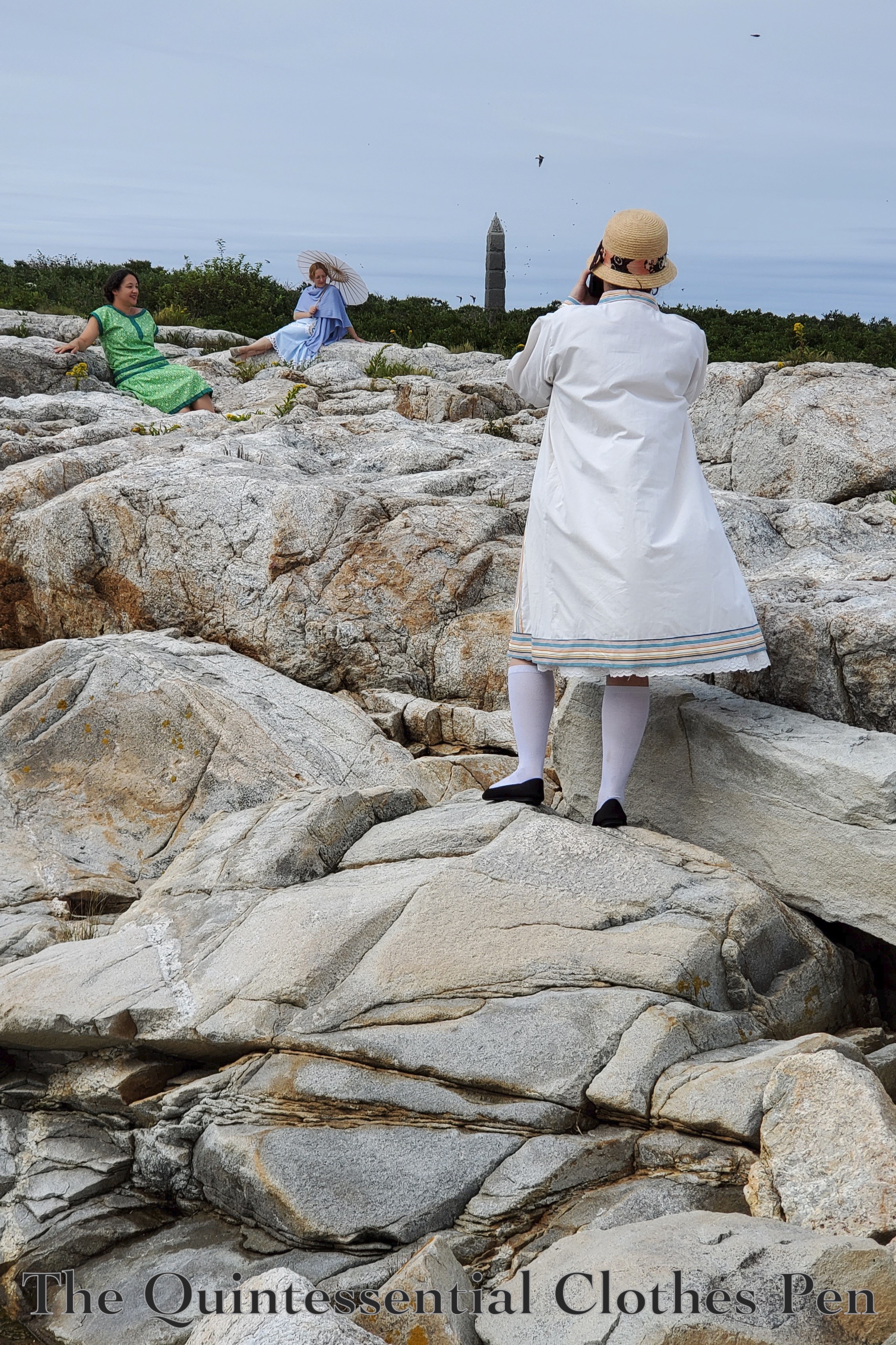 One of the highlights of Gatsby On The Isles for me last year was running around in my new 1928 green dress and having adventures. That includes playing tennis as well as a lengthy walk and clamber on the rocky back side of the island (photos of tennis are in the Gatsby On The Isles blog post linked above).