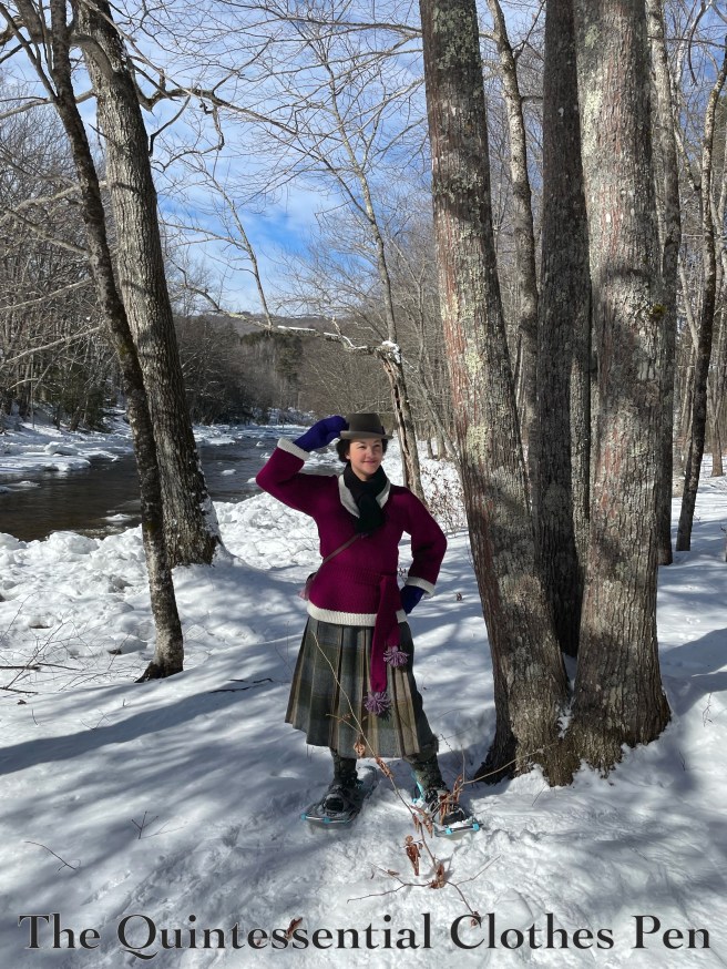 Even though there wasn’t tons of snow… I was determined to use the new snowshoes! I thought it would be more fun to wear another warm historical outfit rather than modern clothes (even though the snowshoes are modern!).