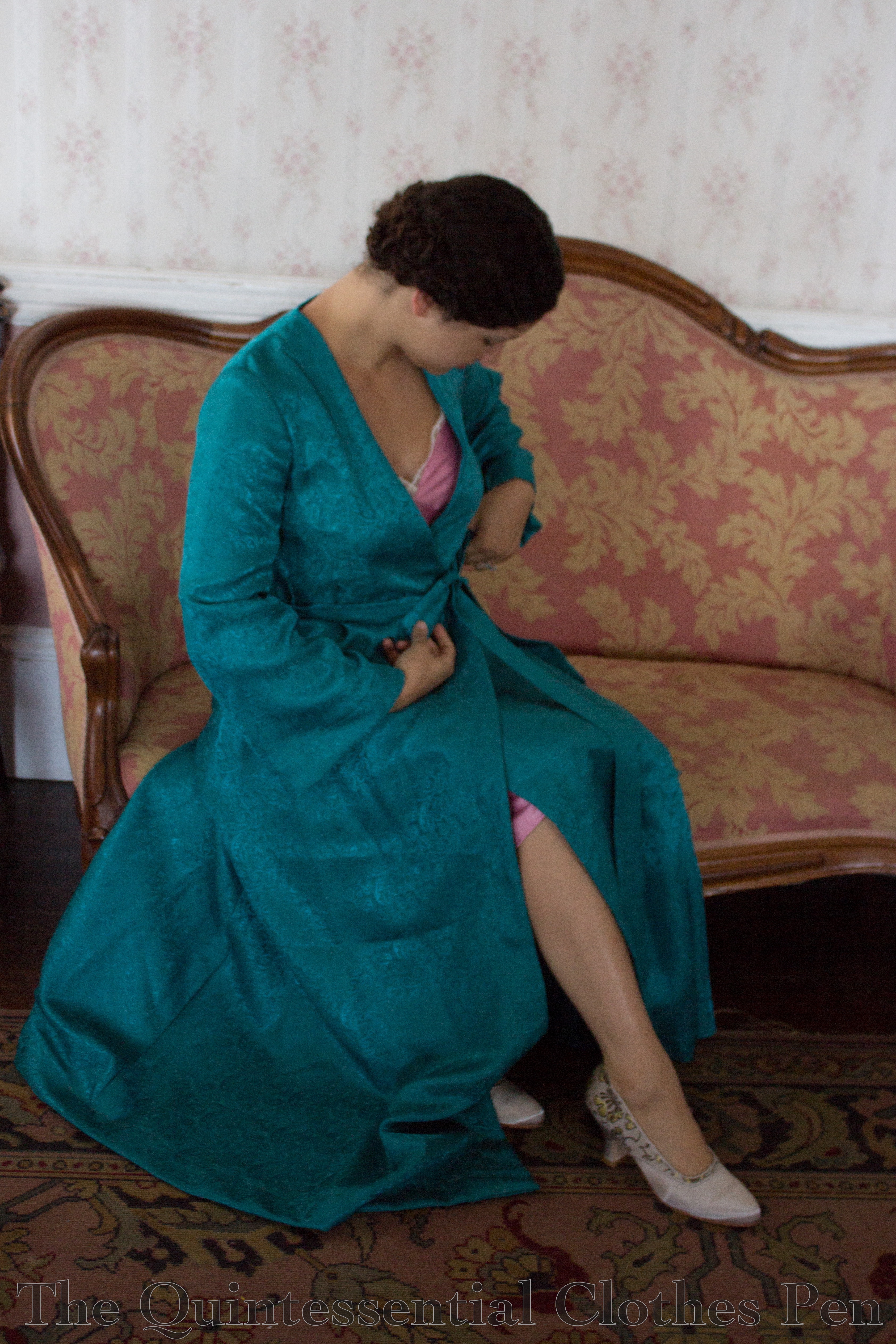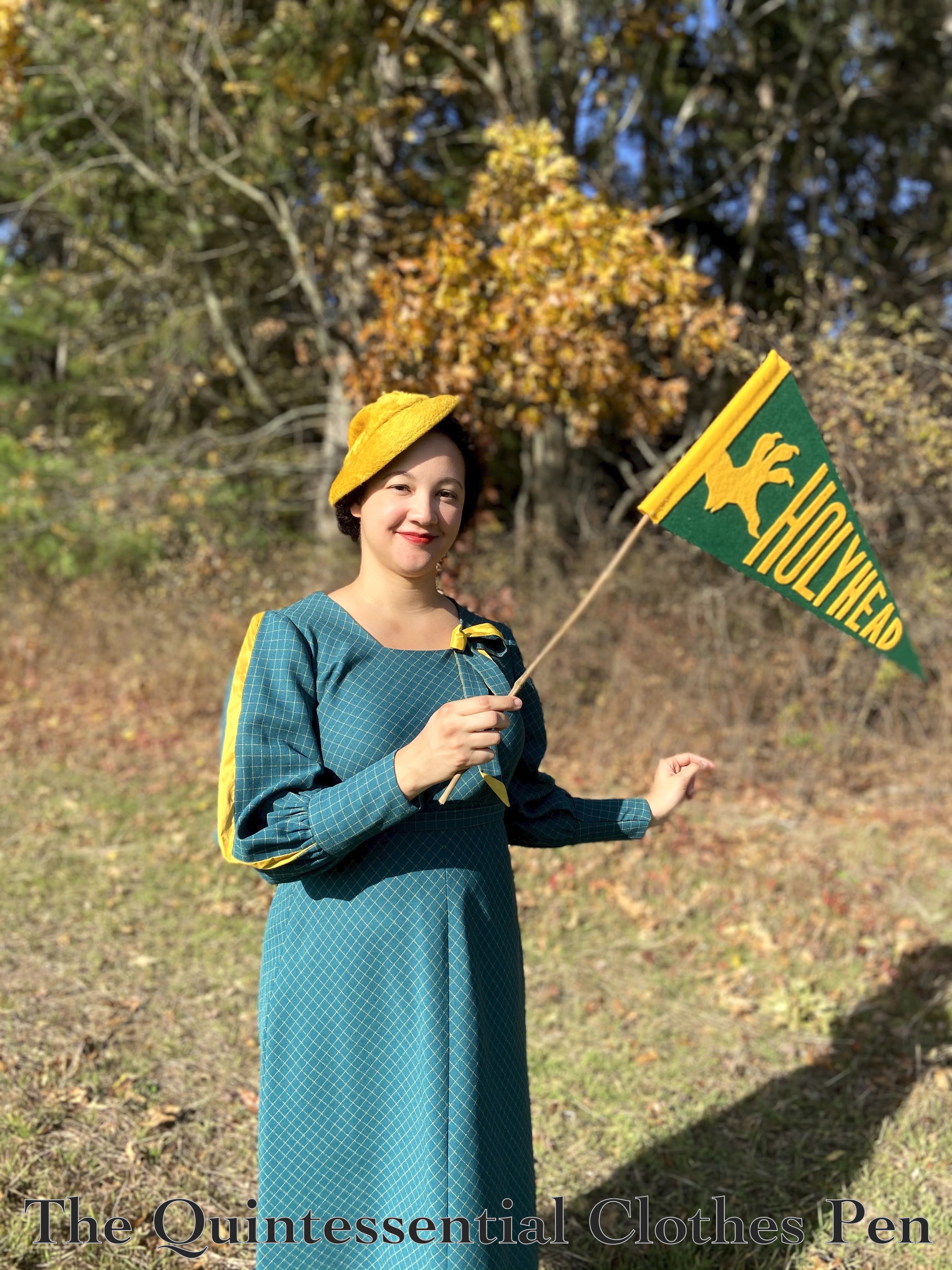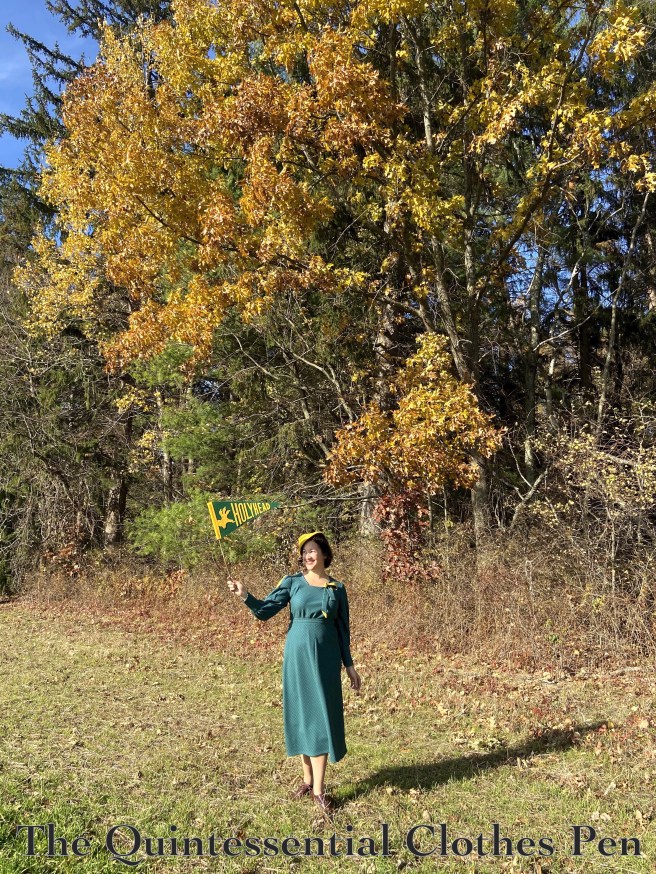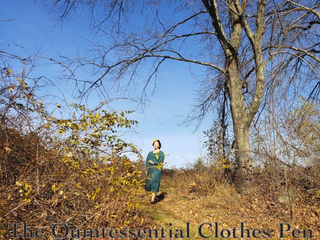 Despite the photos of the whole look with accessories (which I’m very pleased with!), when I tried on the dress after finishing the sewing I was so disappointed! I looked so frumpy in the mirror with the calf length hem and my bare feet! I made a lot of faces. Then I thought, ‘Well, I guess I try on the shoes I plan to wear with this.’ That idea did make me a little happier, because I had snagged a pair of Royal Vintage brown and white spectators but hadn’t found a reason or outfit to wear them with yet. And then… MAGIC. Those 3″ heels absolutely transformed the look! All of a sudden that calf length hem looked great! I was probably standing with more confidence rather than disappointment, too, but really, it was like I was wearing a different dress. Has that ever happened to you? The accessories really make some looks come together! And especially with 1930s calf length hems… the heels really help posture and proportions.