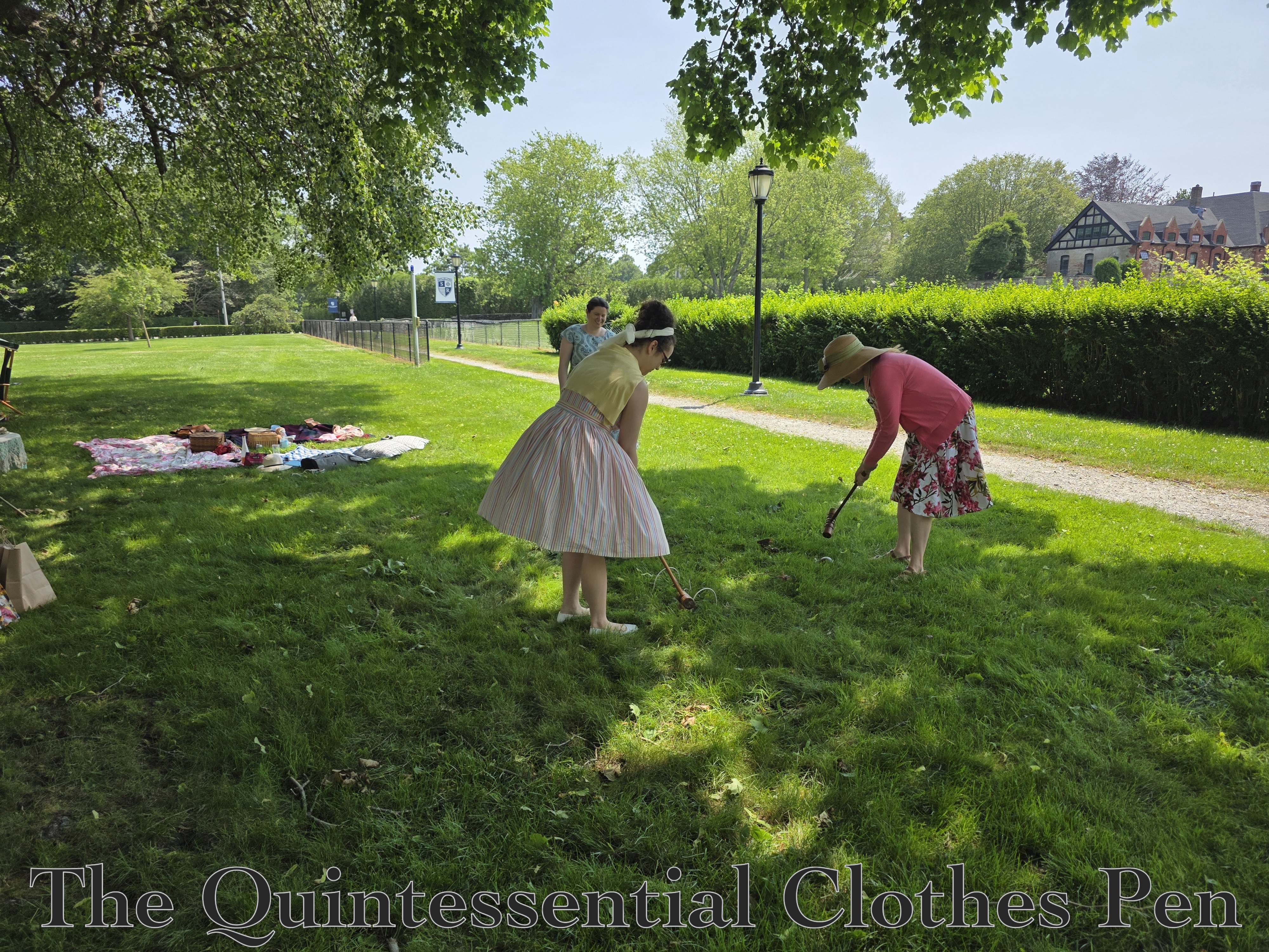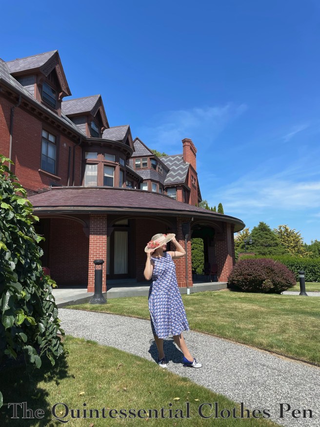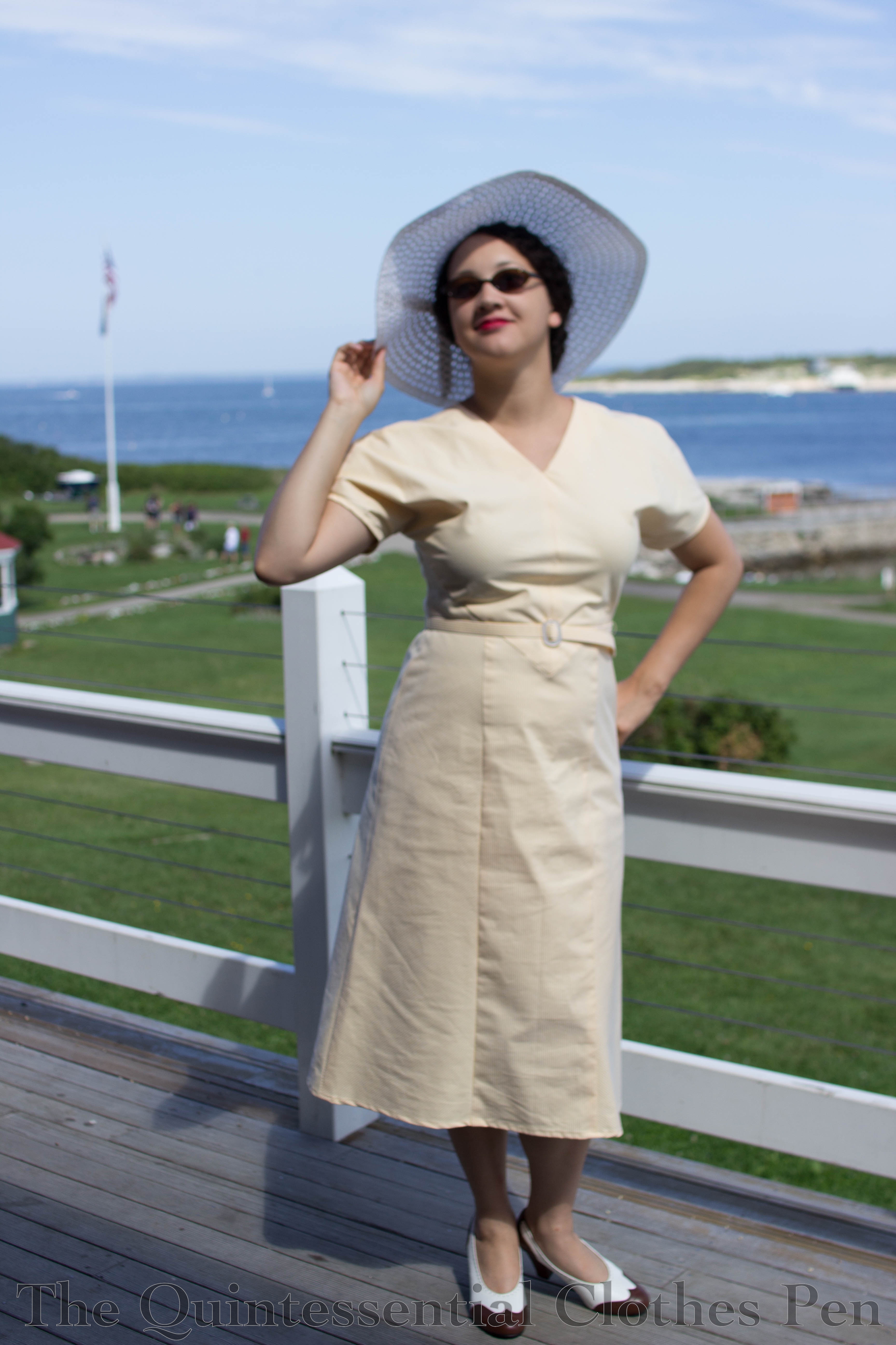 The stripe in the fabric gets a bit lost when you’re not right next to the dress, but I still like it overall. I found the dress was more comfortable to stand in than to sit in, but it did well in the heat and was cool and breezy. Success!