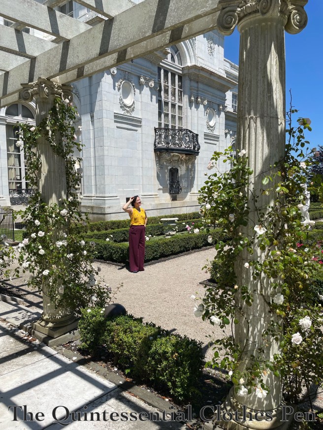 This next one is the ‘Oh no! My hat is flying away!’ face. It was rather windy, so there actually were moments where I had to hold onto my hat to keep it from flying away! This hat is a refashion of a modern sunhat that deserves its own post–coming soon. I’m very pleased with this updated version and I love how well it coordinates with my shoes!