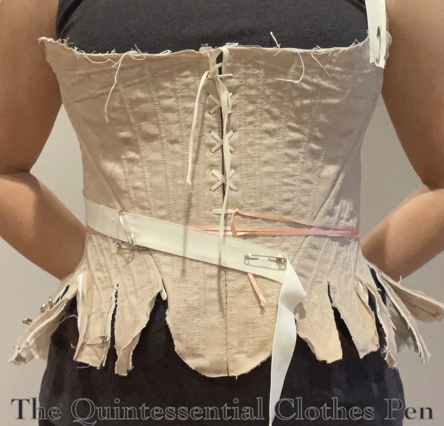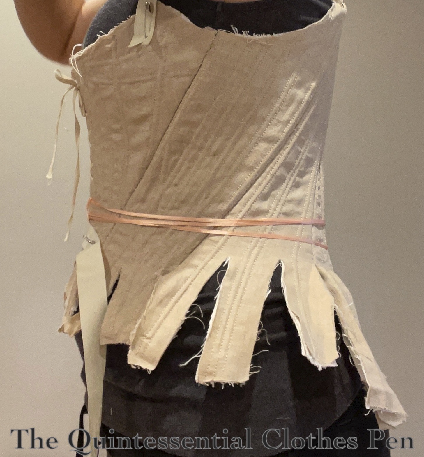In the photo below, most of those methods have been employed to get the bodice to this state, which is basically finished aside from the peplum, neck trim, and closures.