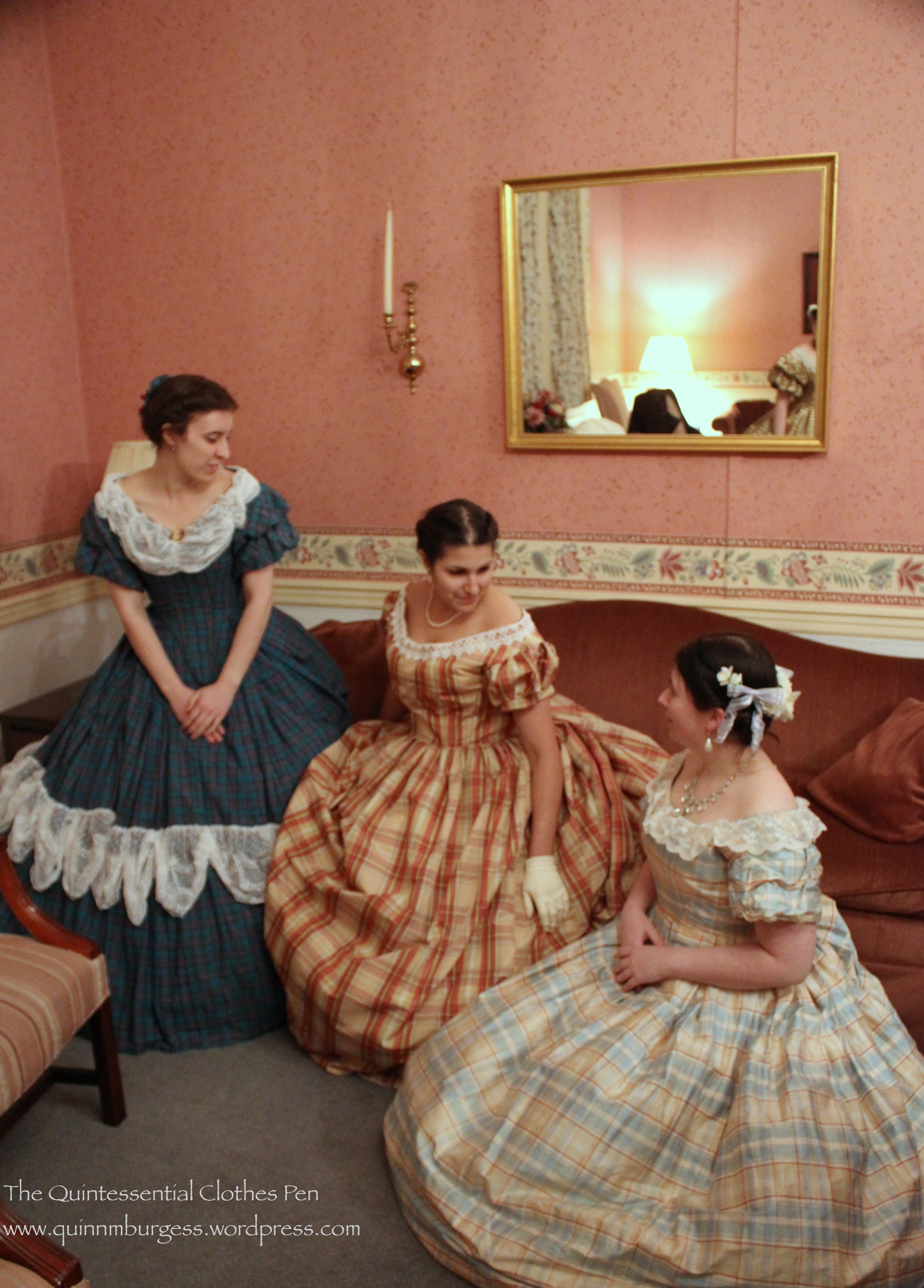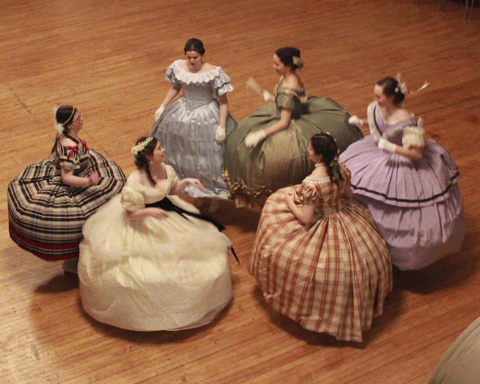 December is going to be a whirlwind of HSF posts and posts about events, so I need to hurry up and get started by sharing pictures of an event that actually happened in November but which I haven’t shared pictures of yet. The event was a 1860s Intensive Dance Weekend, hosted by the Commonwealth Vintage Dancers, featuring two days of dance classes, two evening balls, and a German (an after ball party of fun dance games). I’ve got lots of pictures, so I’m going to split this up into two posts. In today’s post, I’ll share pictures of the Saturday of the dance weekend and Part II will be pictures of the Sunday of the dance weekend.