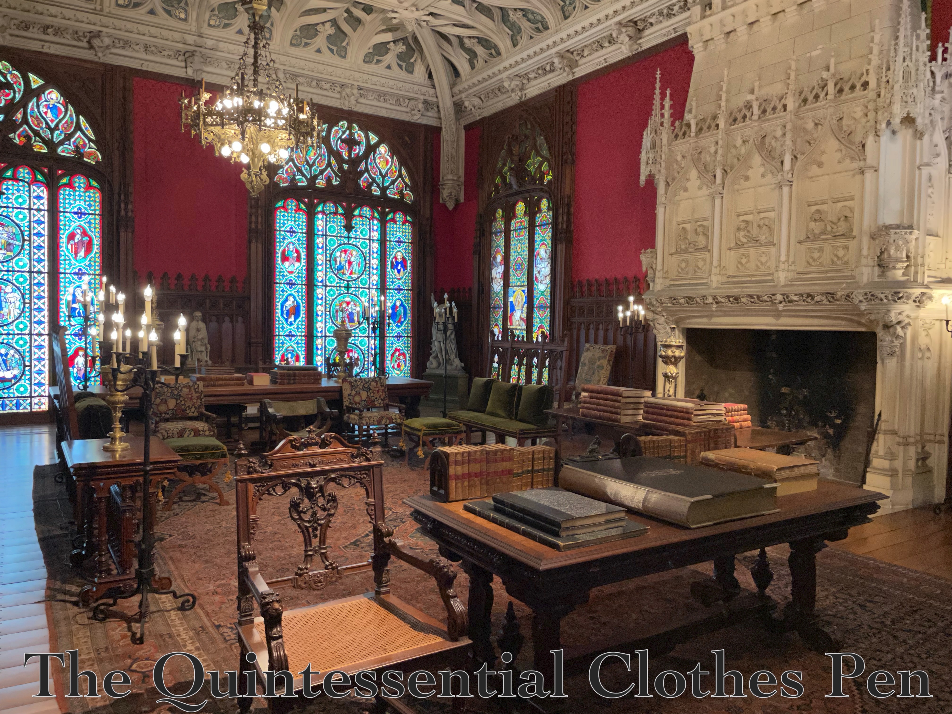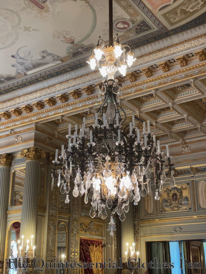 One of the facts that stuck with me relates to the chairs in the dining room. They are made of bronze and covered in gold and silk velvet. Each chair weighs 75 to 100 pounds! Just imagine being in an 1890s dress and wanting to get up from the table. It’s no wonder that someone needed to help with the chair!