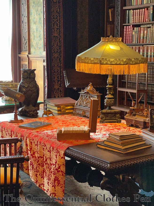 I enjoyed the details, including the large owl on the library table. I asked the docent, who let me know that it is, in fact, a humidor, and that owls had no particular significance to the family that is known about.