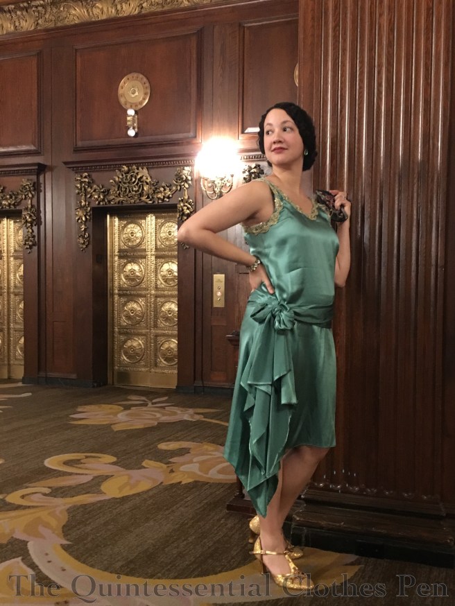When I styled my hair, I tried to have hair come down to my jawline more than I usually do. I think cloches look less silly if there is some hair showing around them. My hair didn’t really look like a bob, but at least there was some hair showing in the front. In the back, it was pinned into a low twist-y mass of curls.