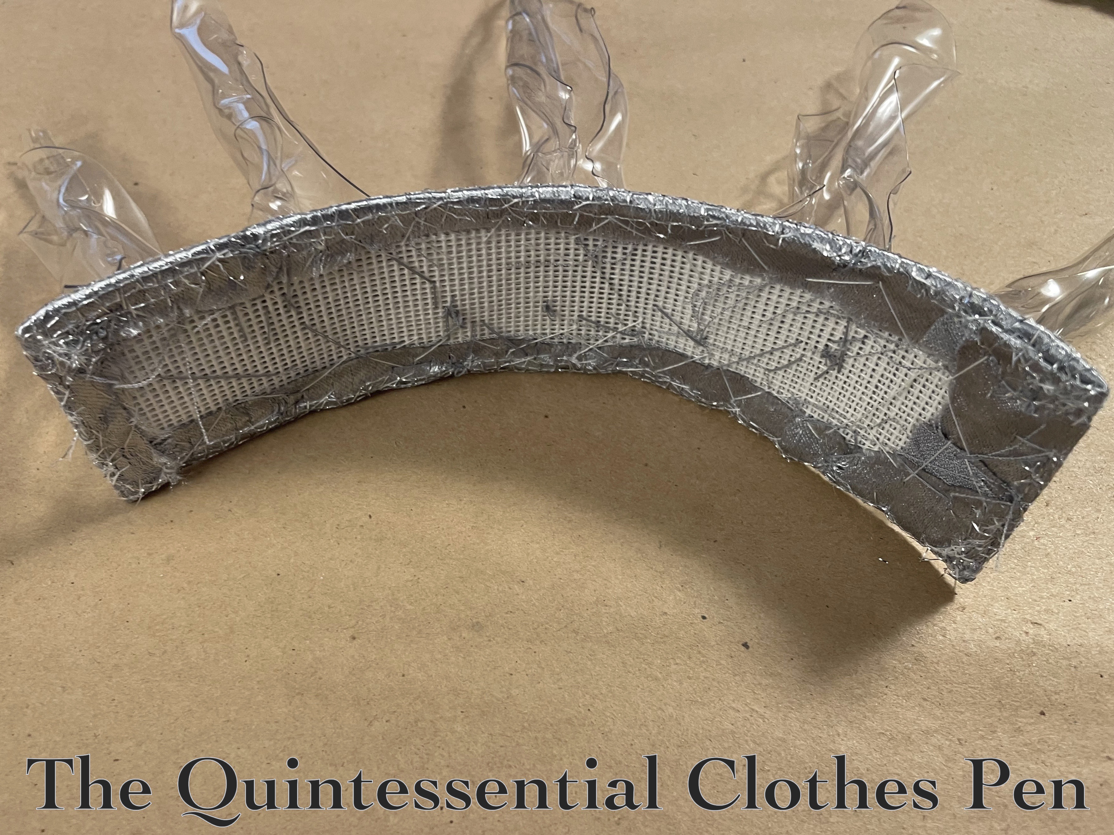 The top of the crown base can be seen below. The silver fabric looks a bit like tinfoil. It was a bit shiny on its own, but made sense once the whole crown was complete.