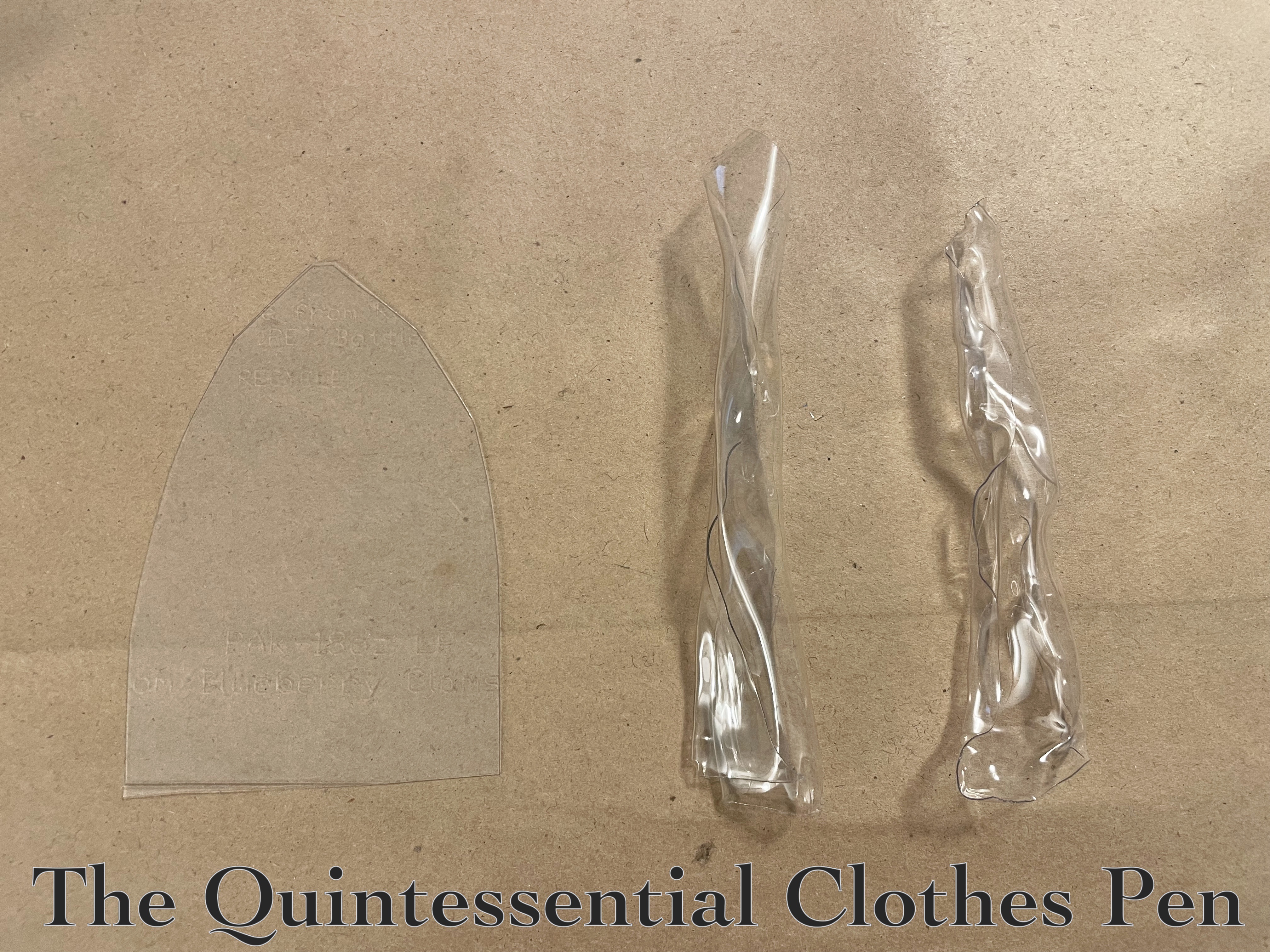 I started by heating the plastic with a hair dryer (outside, for ventilation, and on a sturdy scrap piece of plywood that wouldn’t melt). The hair dryer was not powerful enough to warp the plastic, so I next tried a heat gun. I used an oven mitt to protect the hand holding the plastic. I found that medium heat from the heat gun worked well! My first two samples are below.