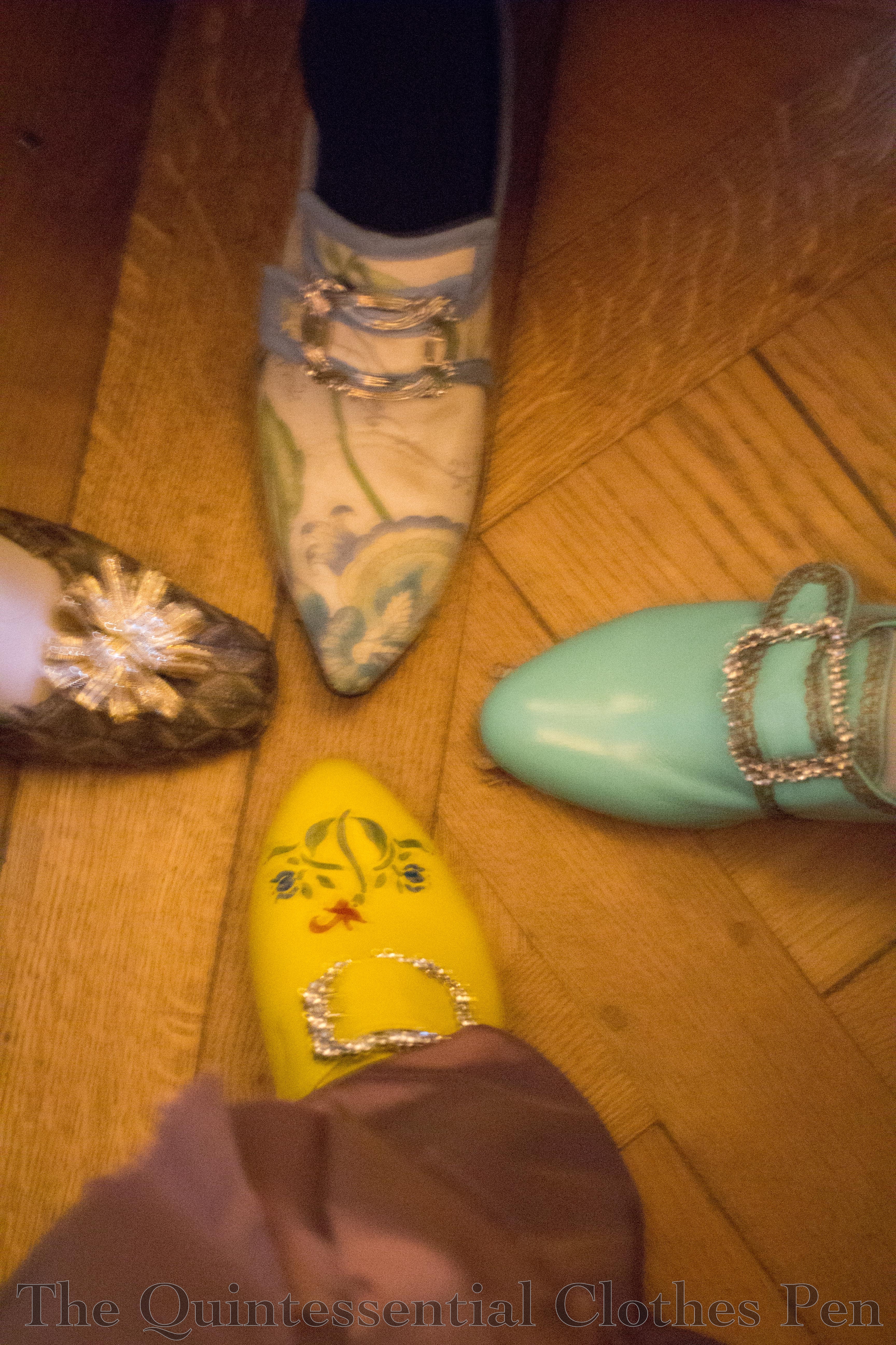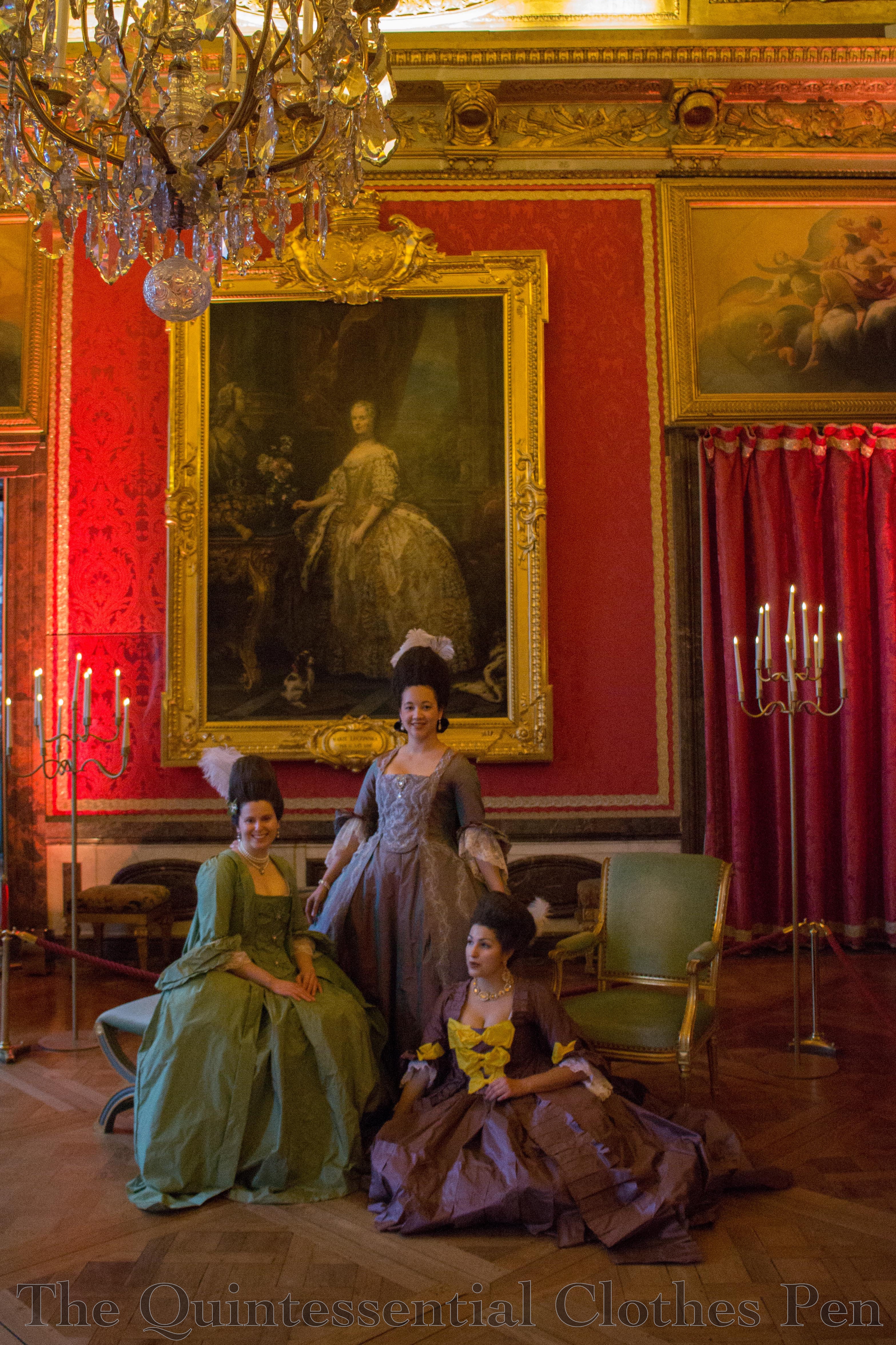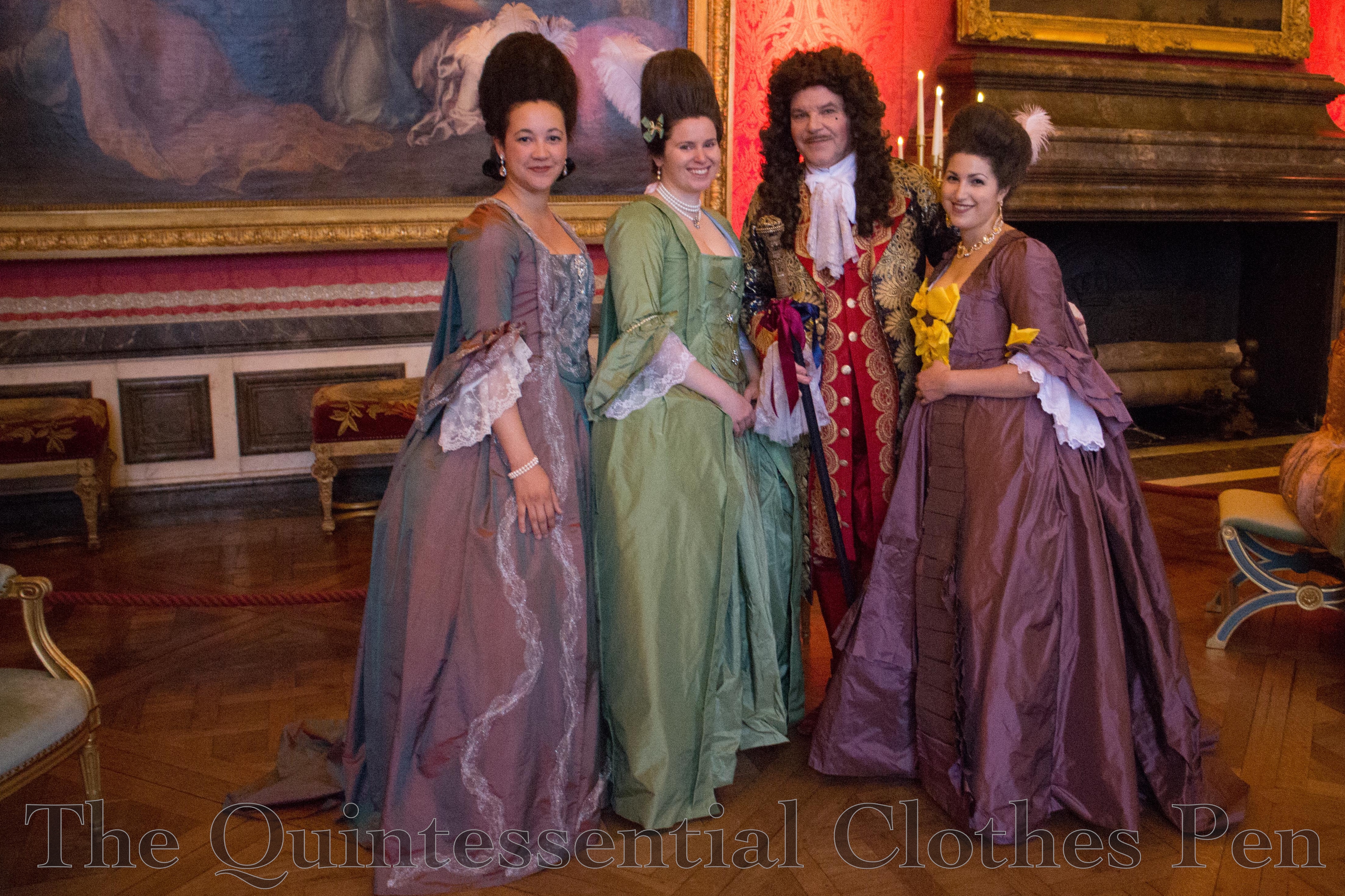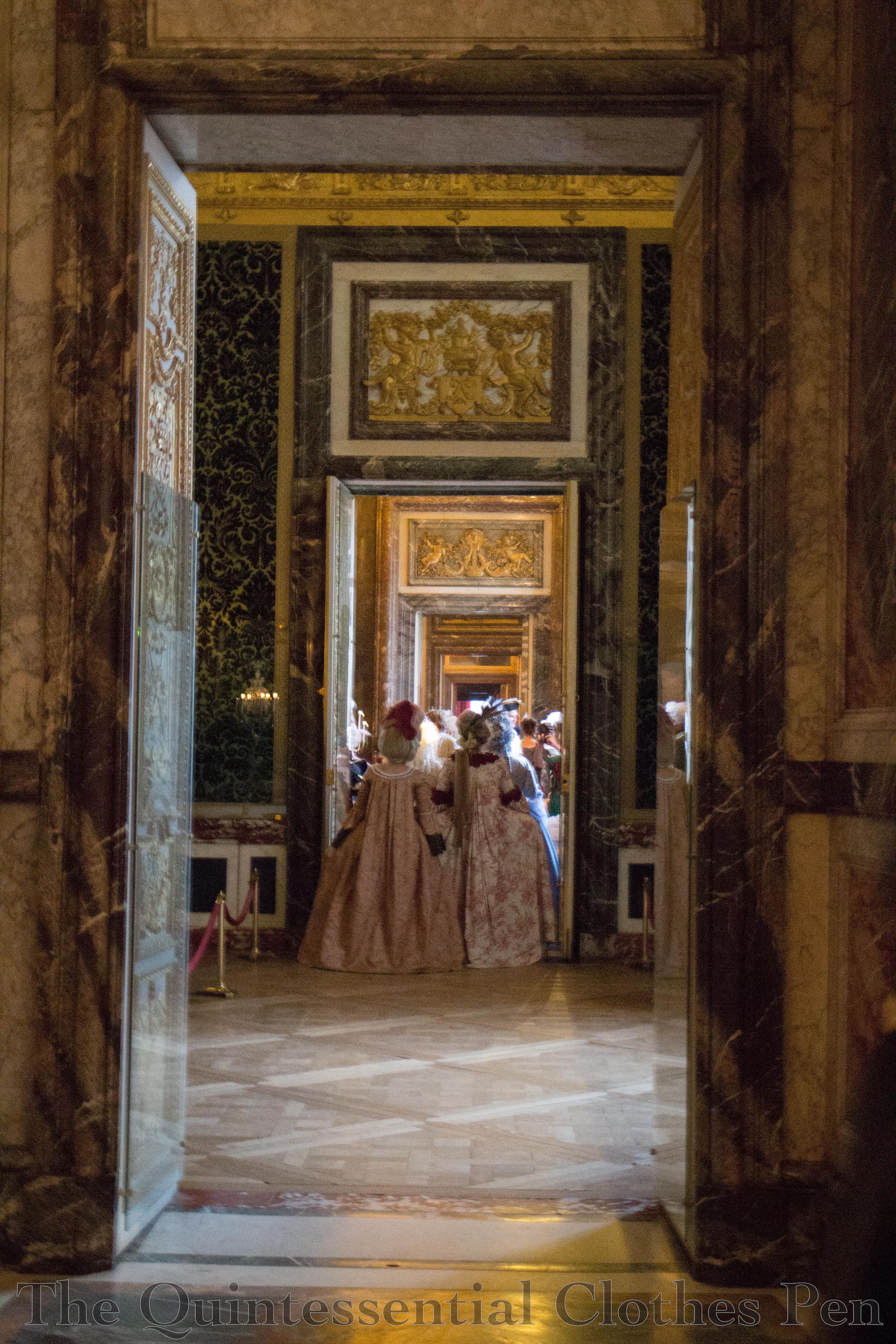 I was so pleased that my American Duchess Kensingtons were still in good shape after the immense amount of rain they endured in 2016. It was really exciting to break them out again with this dress! I’m still chuffed with the metallic lace I added. For Versailles, more bling was the thing! And in this photo, you can see how the light turquoise paint color picks up on the hints of turquoise in the dress fabric!