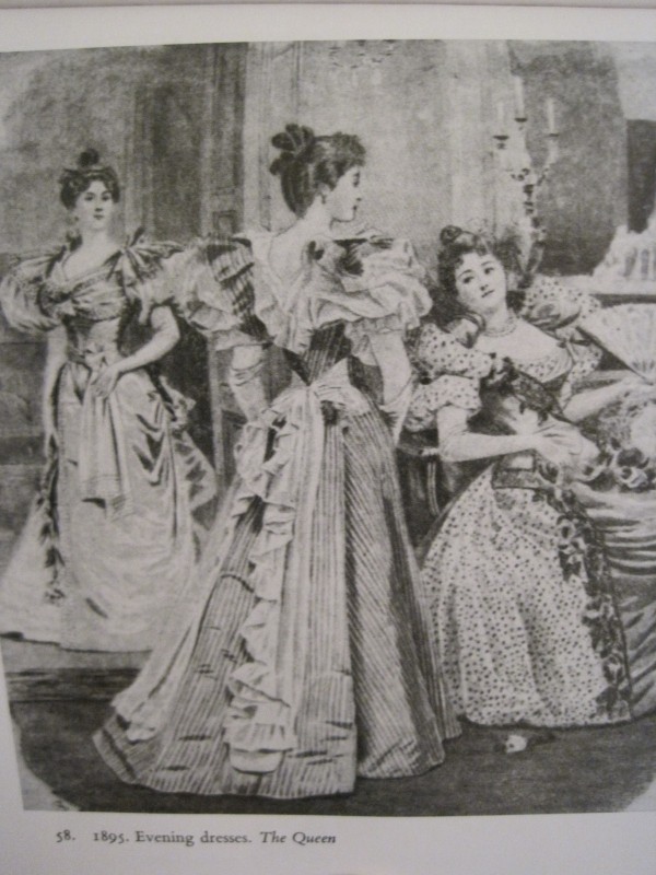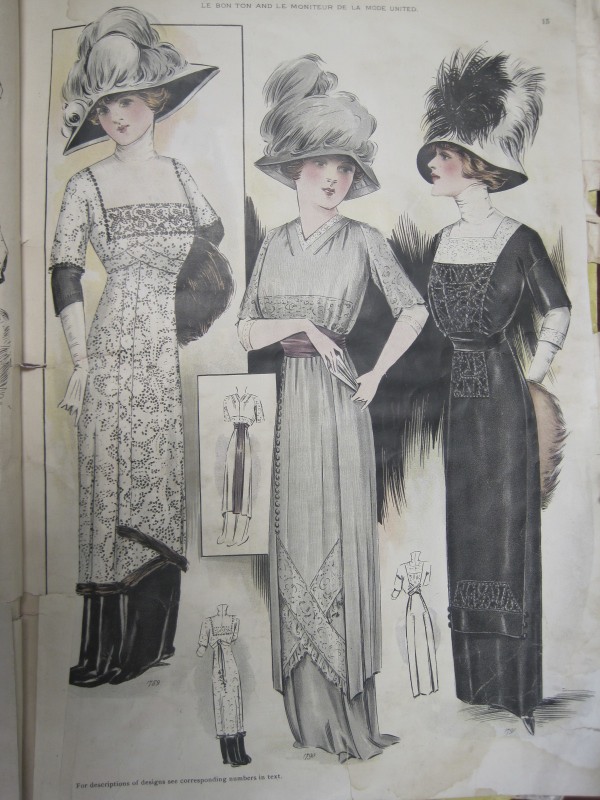 Before April: 1912 beaded afternoon gown and matching hat (far right)Before April: 1912 evening gown (From the Met (although I can’t find the link in the collections right now… sigh))Before August: 1900 organdy blouse, cotton skirt, and boaterBefore August: 1894 ball gown (using many of the details on the gown in the middle)