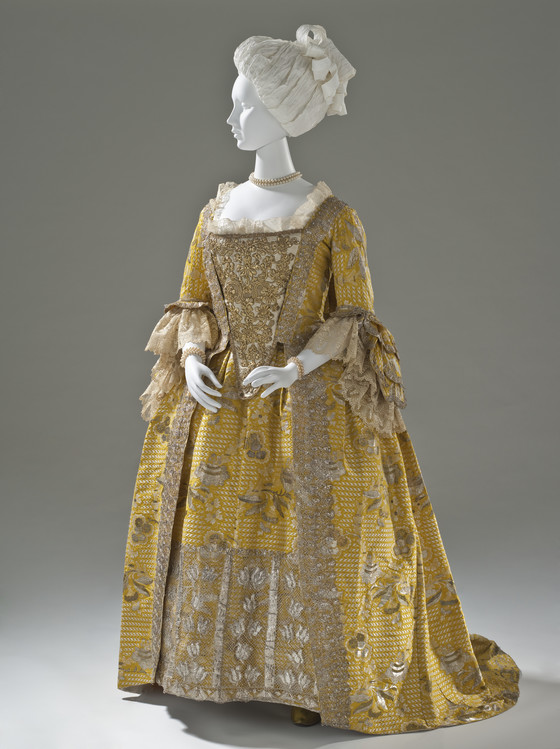 Below, showing off both the front and back of the sacque (or Robe à la Française) style of dress.