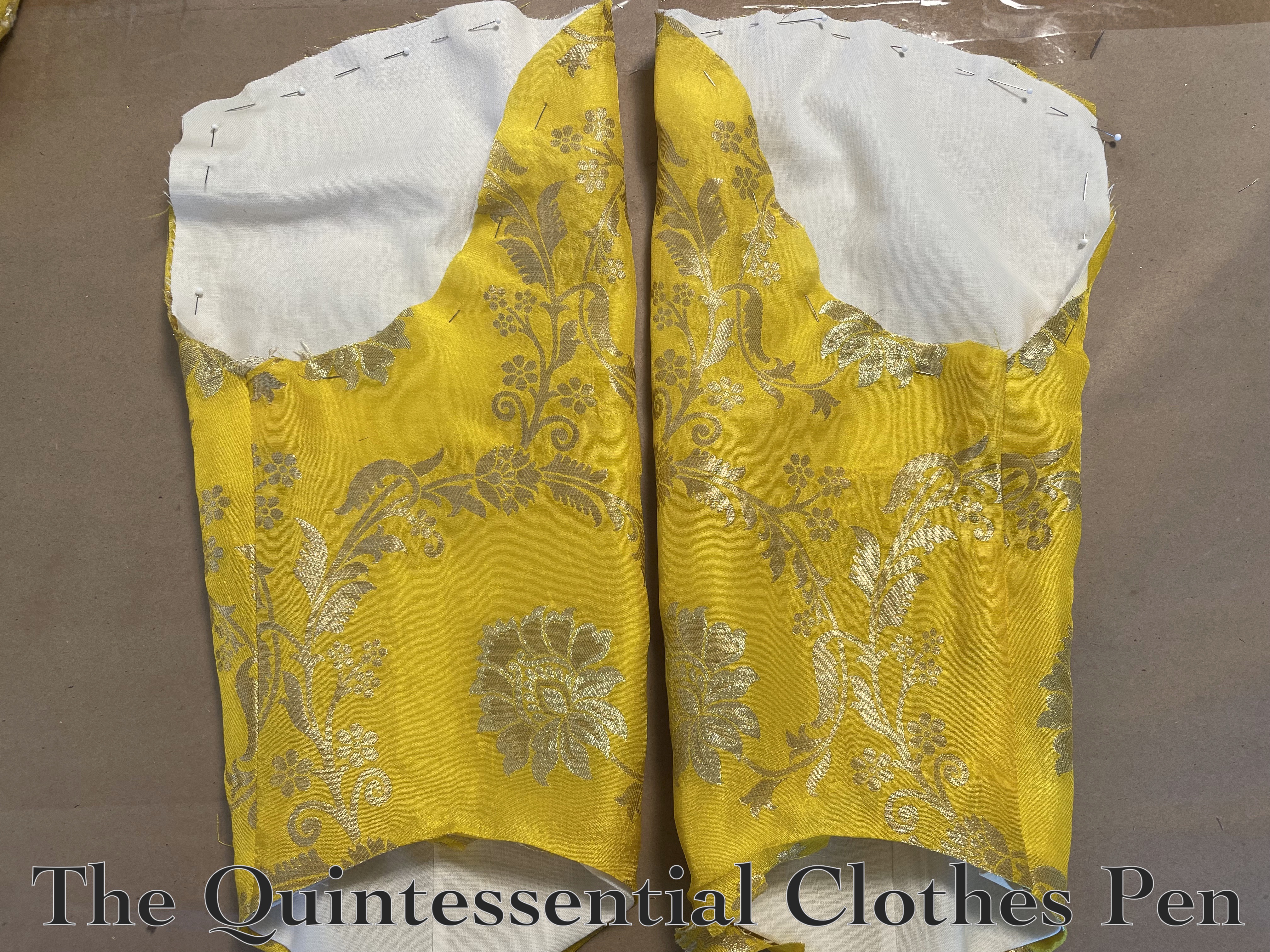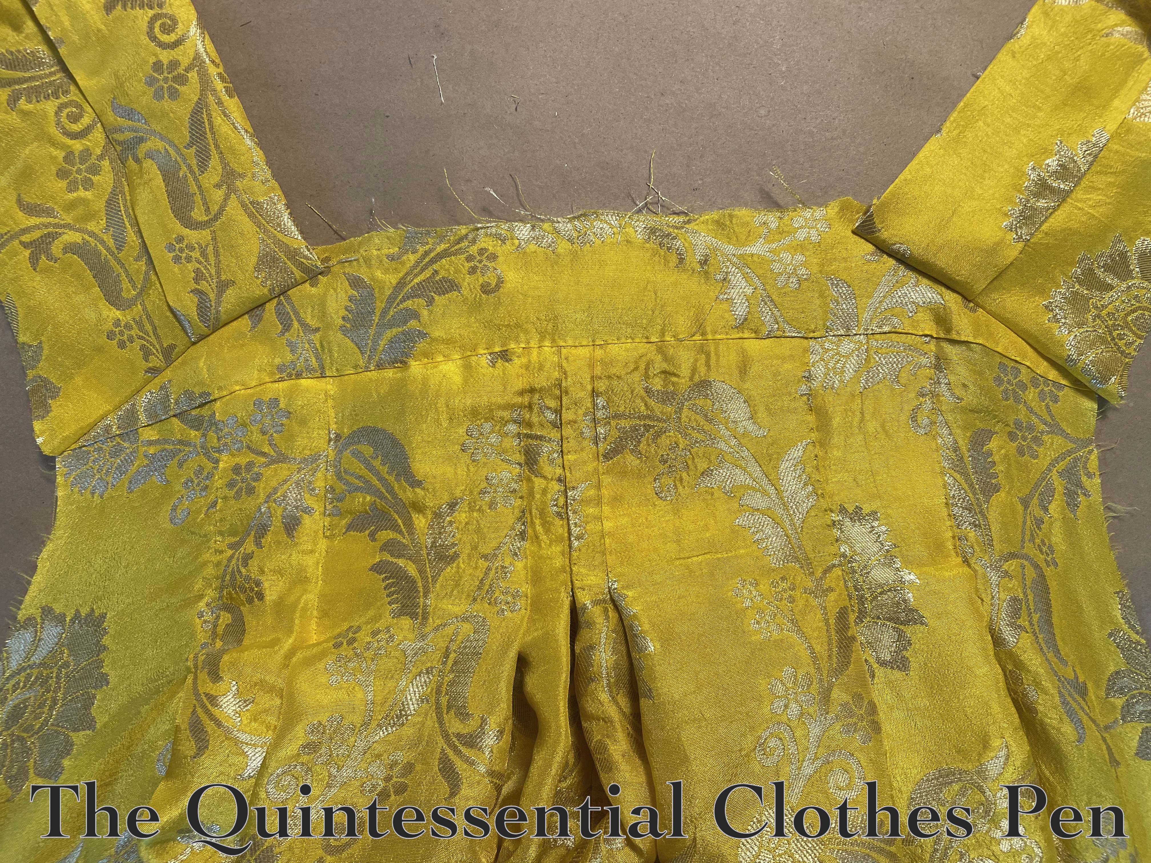 Below, a photo of the Versailles Sacque and new Yellow Sacque next to each other!