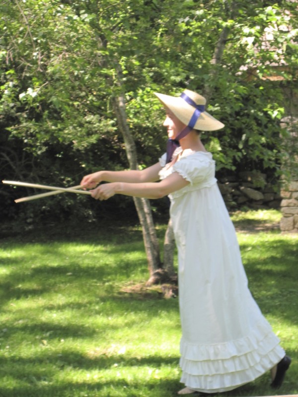 As you might recall from my last post, I have more Regency picnic game pictures to share with you! I’m excited! I hope you are as well… We left off with the four of us playing “Graces” and coming up with innovative methods of playing to keep us amused and challenged… let’s just see where that led us! I had a hard time condensing the photos… I hope you’re not overwhelmed!