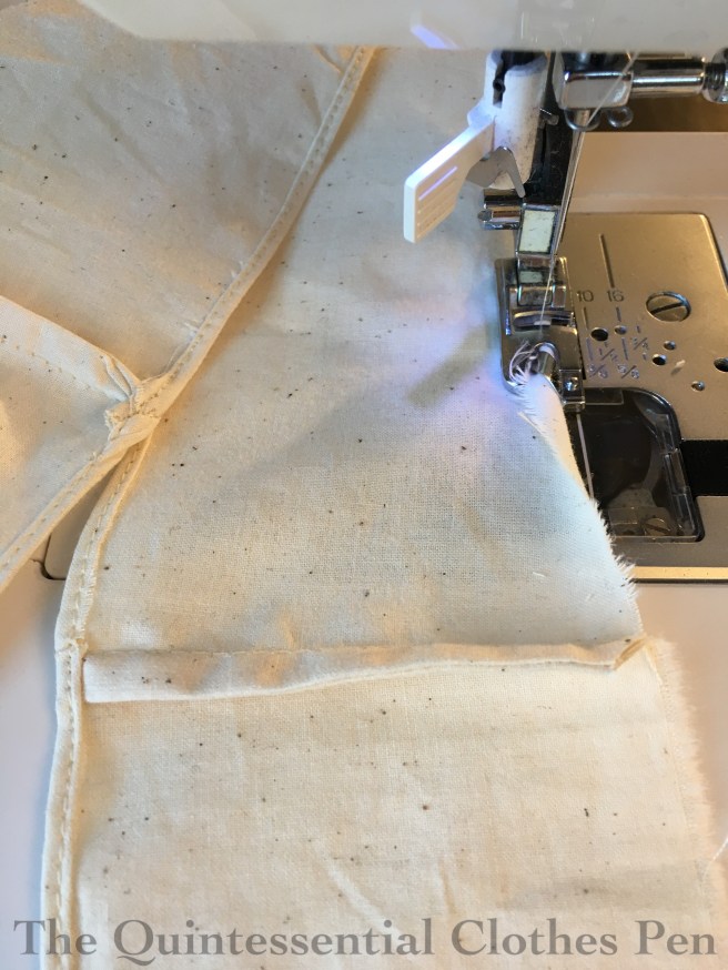 The next photo is also showing you the quarter bag that is hidden under the apron. You see, I wanted to make sure that all of those folds I took the time to drape for the apron would stay in place and not need to be fussed with to lay nicely with each wearing. My solution was to run a length of twill tape down from the waistband to just above the hem of the apron. The silk is tacked to the twill tape to help keep the folds just so, and the bottom of the twill tape has this small pocket of silk, containing a Canadian quarter (perfect, because I’m not in Canada so it’s not very useful as currency) to help weight it and keep the folds from springing up.