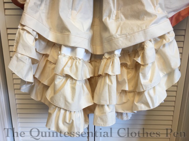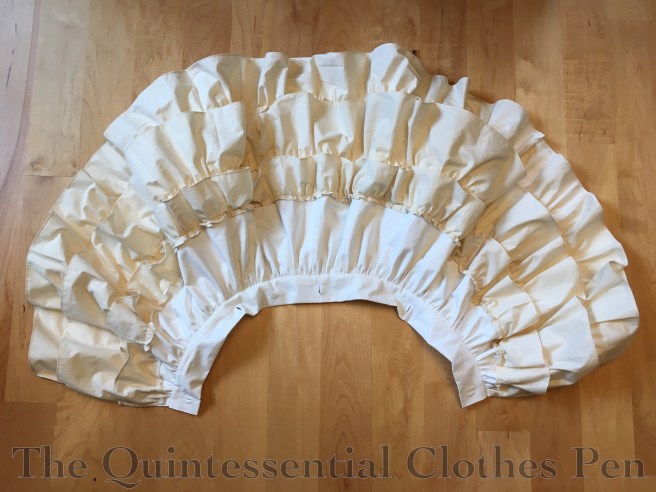 This creates another form of a balayeuse. Remember that word, from May? I have a whole post about the amazing detachable balayeuse I made for my petticoat for this dress, but a balayeuse can also be an inside frill on the hem of a skirt.