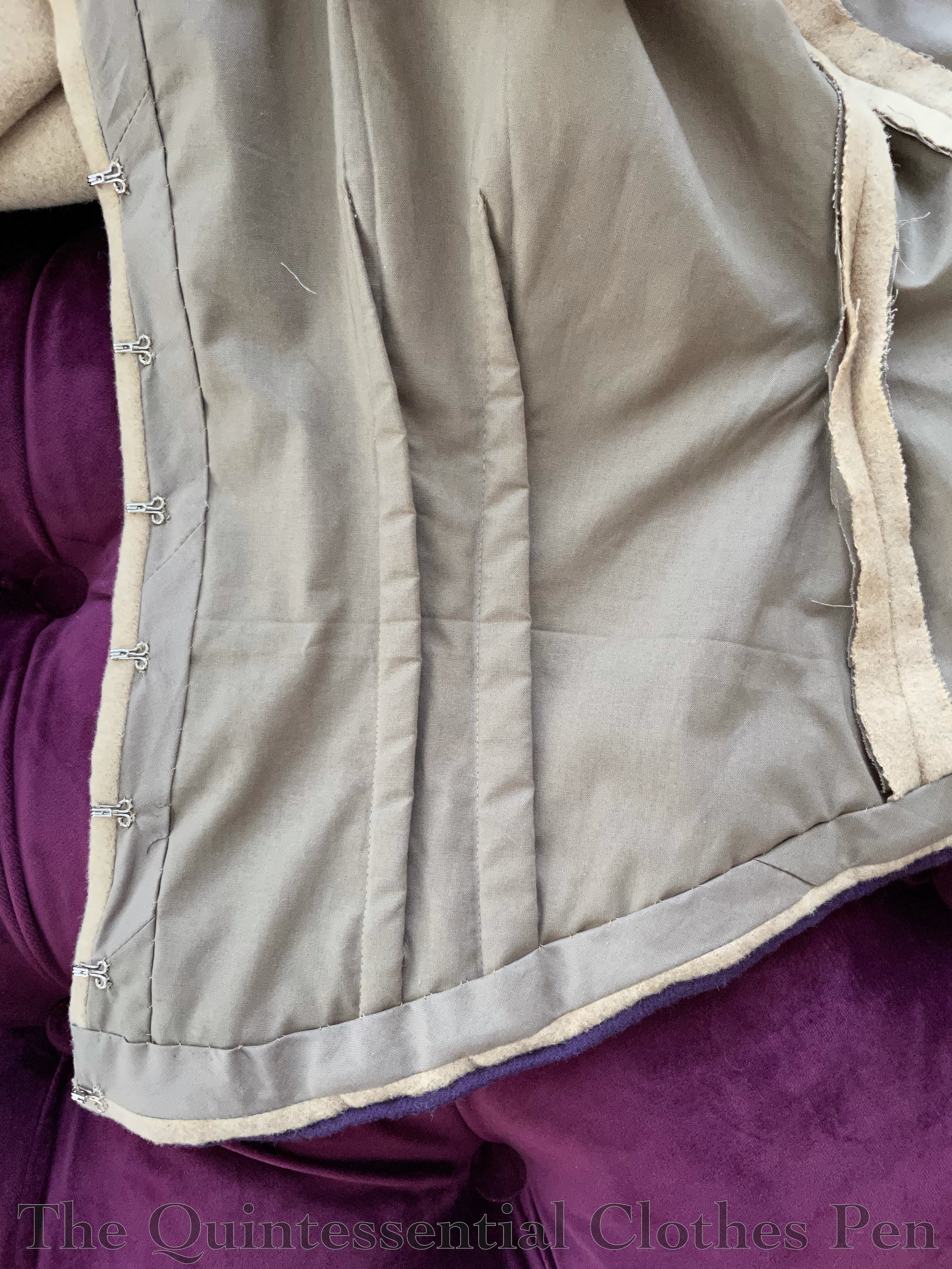 - Boning the center back edges so they would lie flat when laced closed