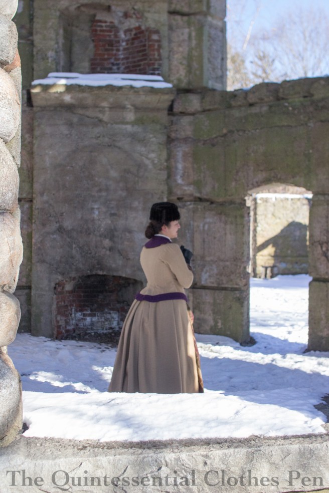 The “sleeves” wound up looking a little odd where the meet the back of the bodice, but that’s more due to my original patterning of a very inset armhole in the back than it is the sleeve pattern. It’s a lesson/change for the next bustle period evening gown I make, whenever that is!
