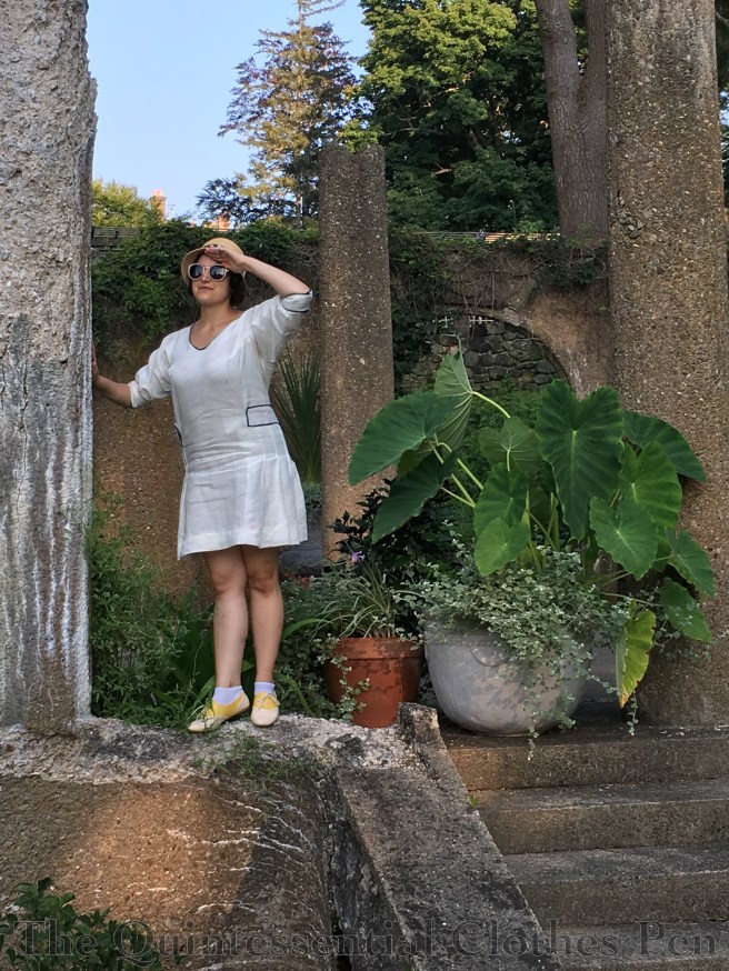 I knew I wanted a cloche to go with my 1925 Blue Coral Dress from early on in the process of making it. It was going to be hot when I wore the dress, so I knew I wanted something that would both look and feel lightweight. Turns out any hat was warmer than a bare head (well, one with hair on it!), but that being said, I think this was on the right track with a lightweight hat.