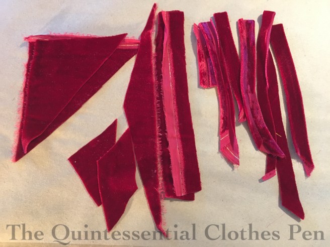 After recutting my bows, this is the velvet I had left. I didn’t include anything for scale, but the longest piece in this photo is about 6″!