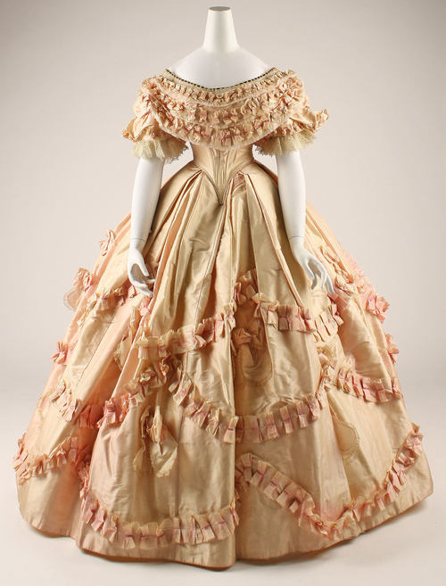 Years later, I am fascinated by costume, material, and social history. I get excited about the entire 19th century–but the only period that really gives me the wiggles remains the 1860s. There’s just something about women resembling giant moving cupcakes that is fascinating and inspiring.