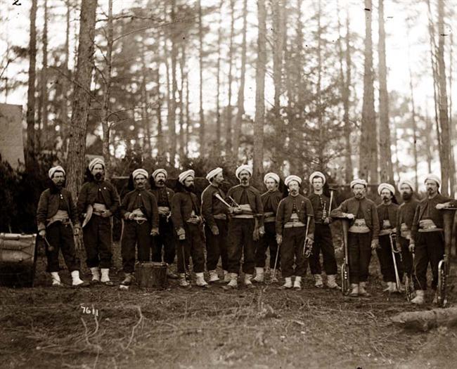 In the 1830s, the French military fighting in North Africa incorporated a tribe of fierce fighters into their ranks. These original soliders were renowned for their skills. In fact, in 1852 the French created three units of Zouaves to be entirely of Frenchmen. These French Zouaves achieved legendary status for themselves during the Crimean War (1854-1855). More detailed information about their involvement can be found in this history of Zouaves (this site also has some great pictures of Zouave regiments). The French Zouaves were quite inspirational to American forces during the American Civil War: both the Confederate and Union armies formed Zouave regiments who wore imitations of the French uniforms.
