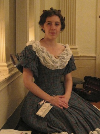 I’ve been hoping for an opportunity to wear Belle for the last four years, not only to give a purpose to the dress I so lovingly created, but also to see how it feels to wear it for a hours at a time. I just recently attended an event called Fezziwig’s Ball, which was presented by the Commonwealth Vintage Dancers in Salem, Massachusetts. I was able to sing Christmas carols, dance, and have a real experience wearing Belle–and I was in the company of others who not only appreciated my hard work, but who had also worked hard to create and wear their own 1860s dresses!