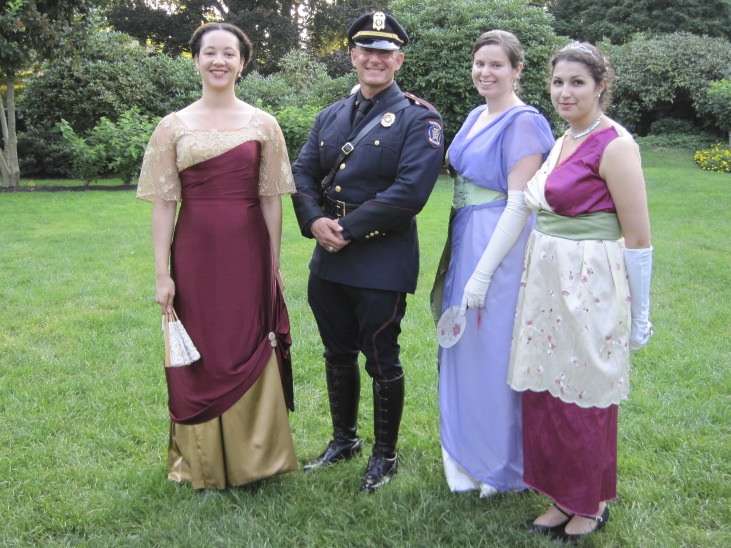 Instead of a traditional Gibson Girl hair style, I tried a style more like this, with a center part and poofs on each side. It was a bit squashed by my hat, but I was quite pleased with it overall. Unfortunately, I didn’t get any perfect shots of just my hair style. I’ll have to try it again someday and get hair pictures.