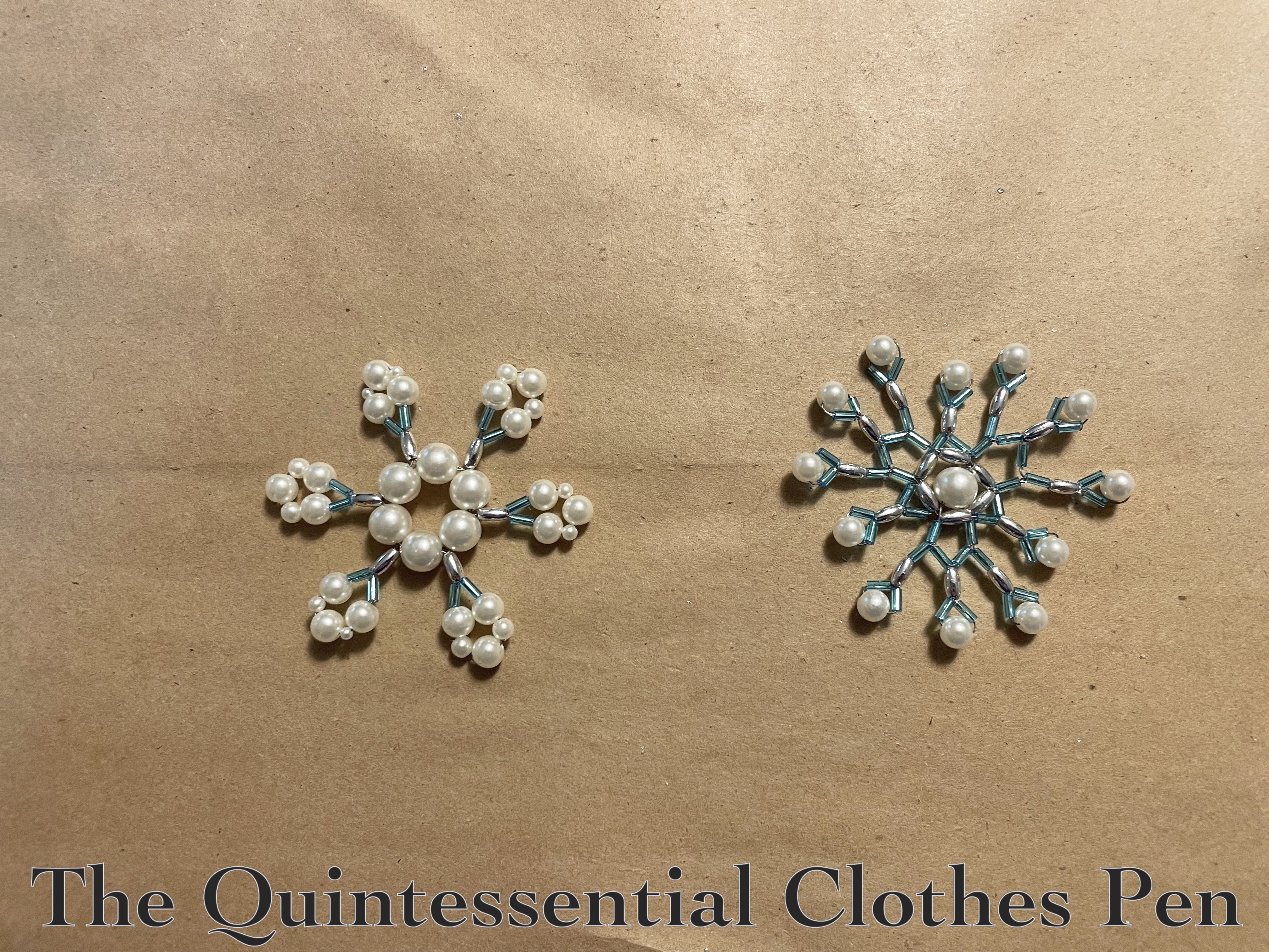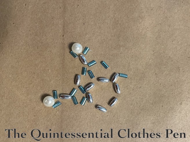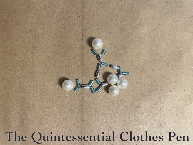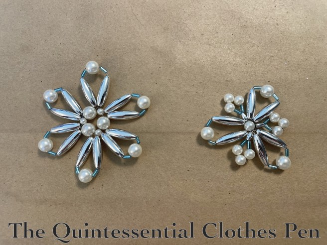 I did a quick internet search for ‘beaded snowflake tutorial’. There are many! But this one, on Instructables, use beads similar to the types I had available, so that was my main inspiration. I laid out my beads in a few ways to see what would best approximate the pattern in the tutorial, as you can see below.