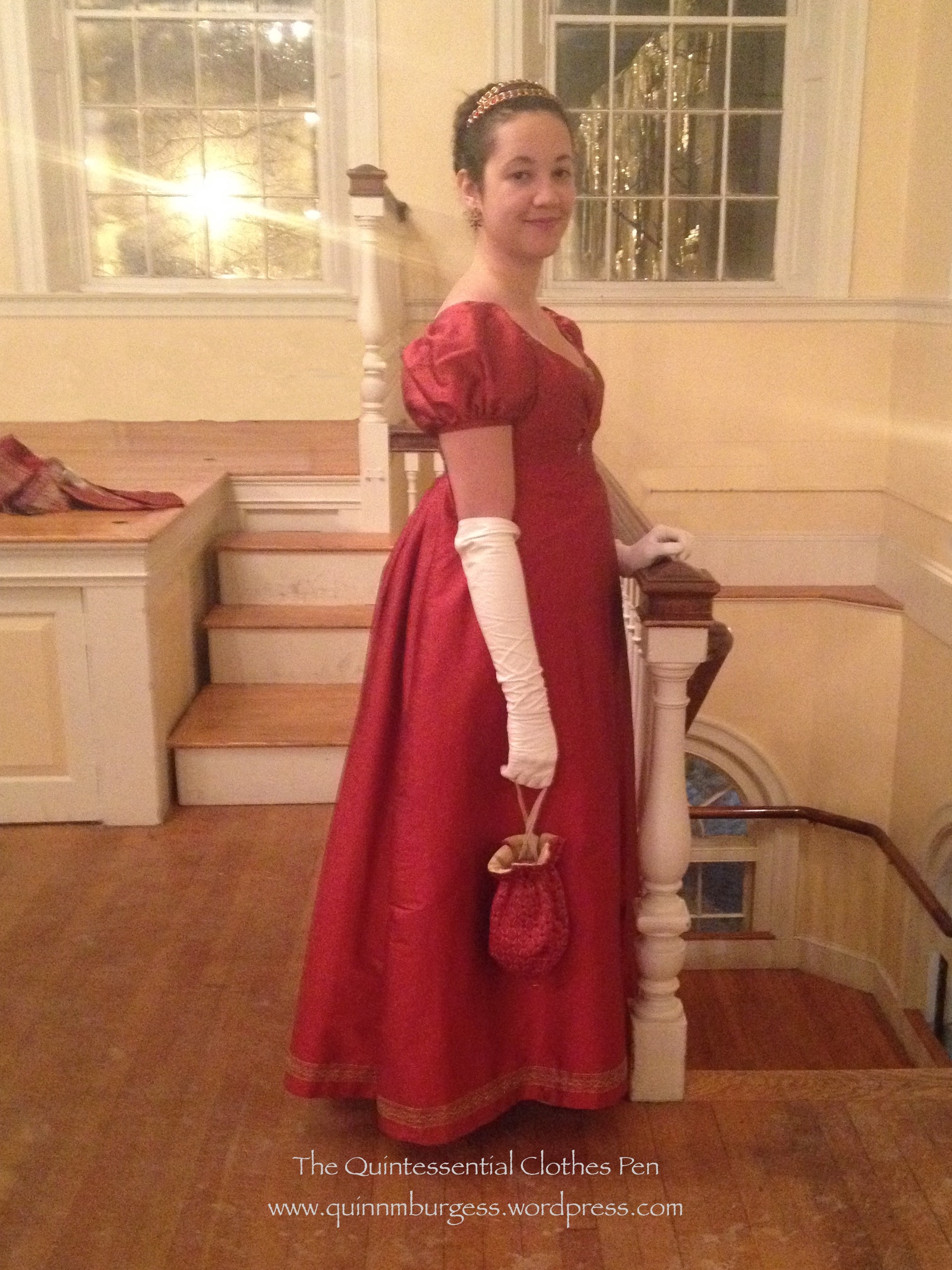 That’s it, really. Massive hair, some hanging curls, plop the trimmed hat on top, secure it with a hat pin, and suddenly my head is about double the size it normally is! Here is another photo showing the hat and a sneak peak at more of the dress. Lots of details are coming up about the dress in future posts!