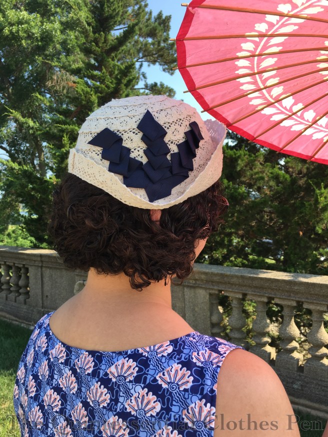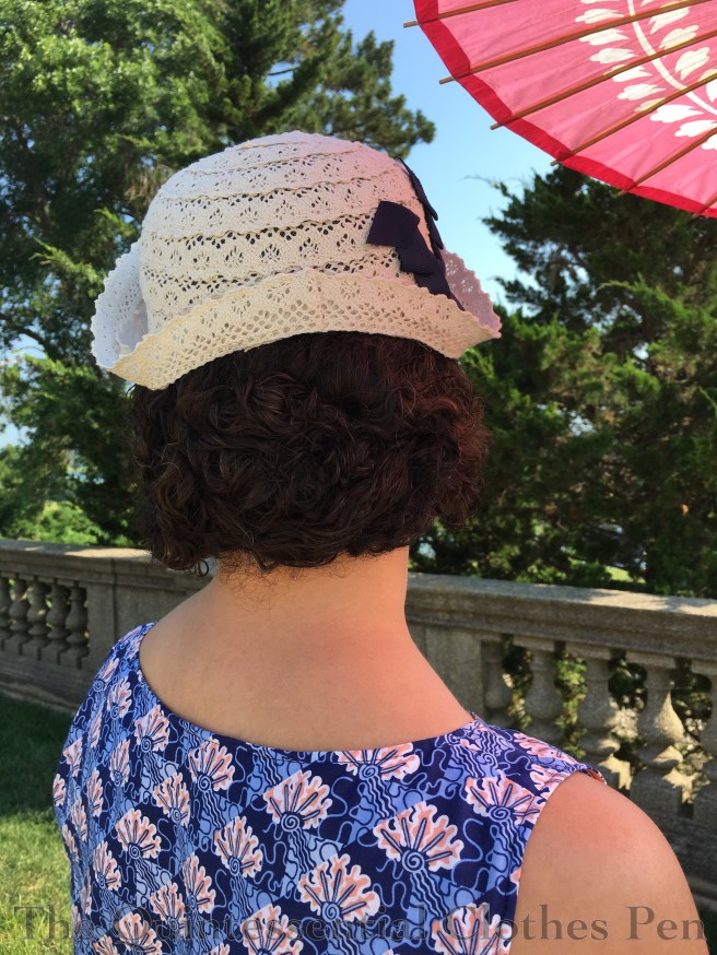 I knew I wanted a cloche to go with my 1925 Blue Coral Dress from early on in the process of making it. It was going to be hot when I wore the dress, so I knew I wanted something that would both look and feel lightweight. Turns out any hat was warmer than a bare head (well, one with hair on it!), but that being said, I think this was on the right track with a lightweight hat.