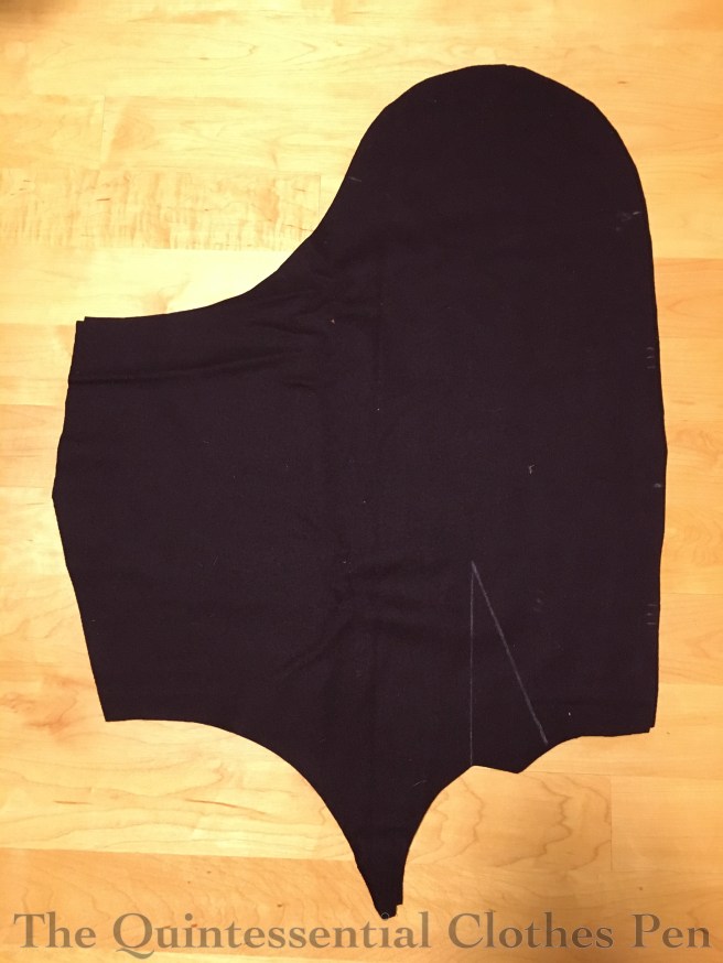 In order to make the lining of my mantle tidy, the sleeves were fully lined before being set into the side back seams. Here is one sleeve assembled and ready to be set in.