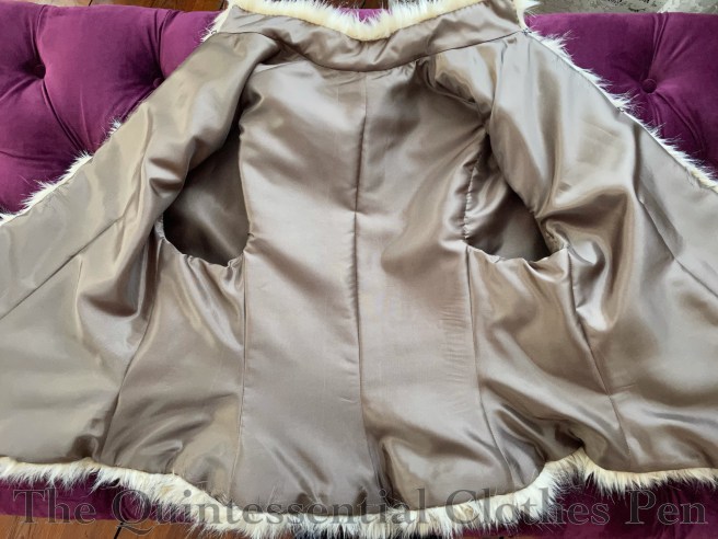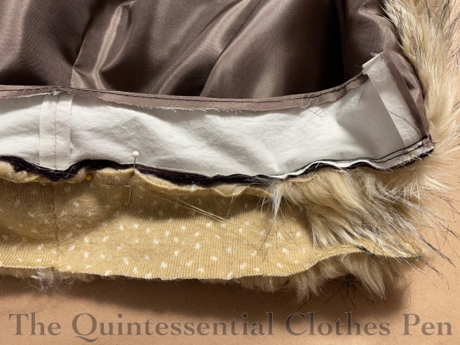 After that I flipped the lining up, turned all of the seam allowances in, and whip stitched the lining to the fur edge. It seemed easier to do it this way rather than machine sewing the fur.