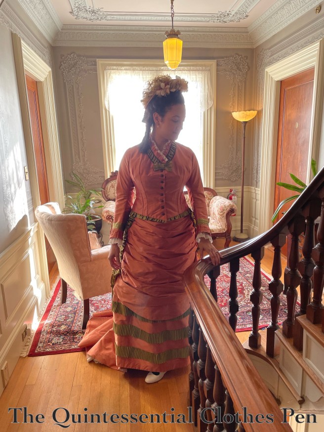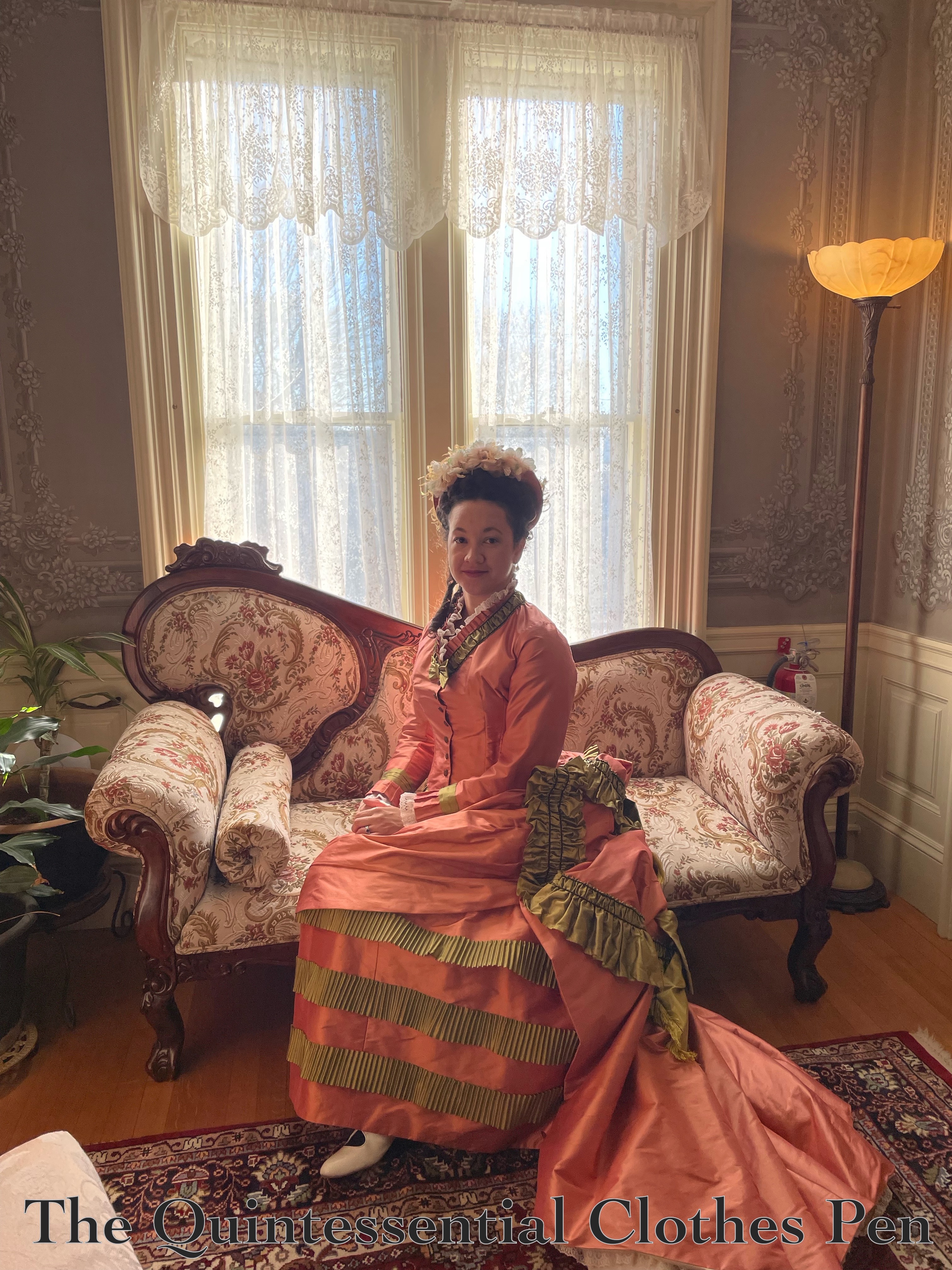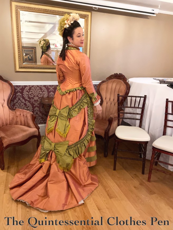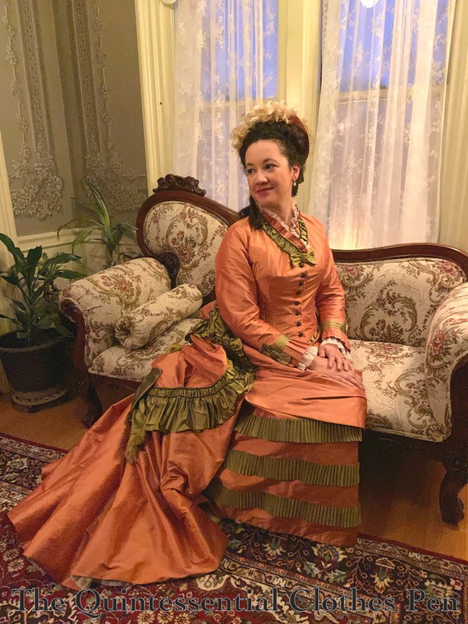 How historically accurate is it?: 85%. The pattern and silhouette are good, but the polyester lining and faux fur are not accurate. I’ve also never examined an extant 1880s mantle up close, so the construction methods are guesses that made sense to me.