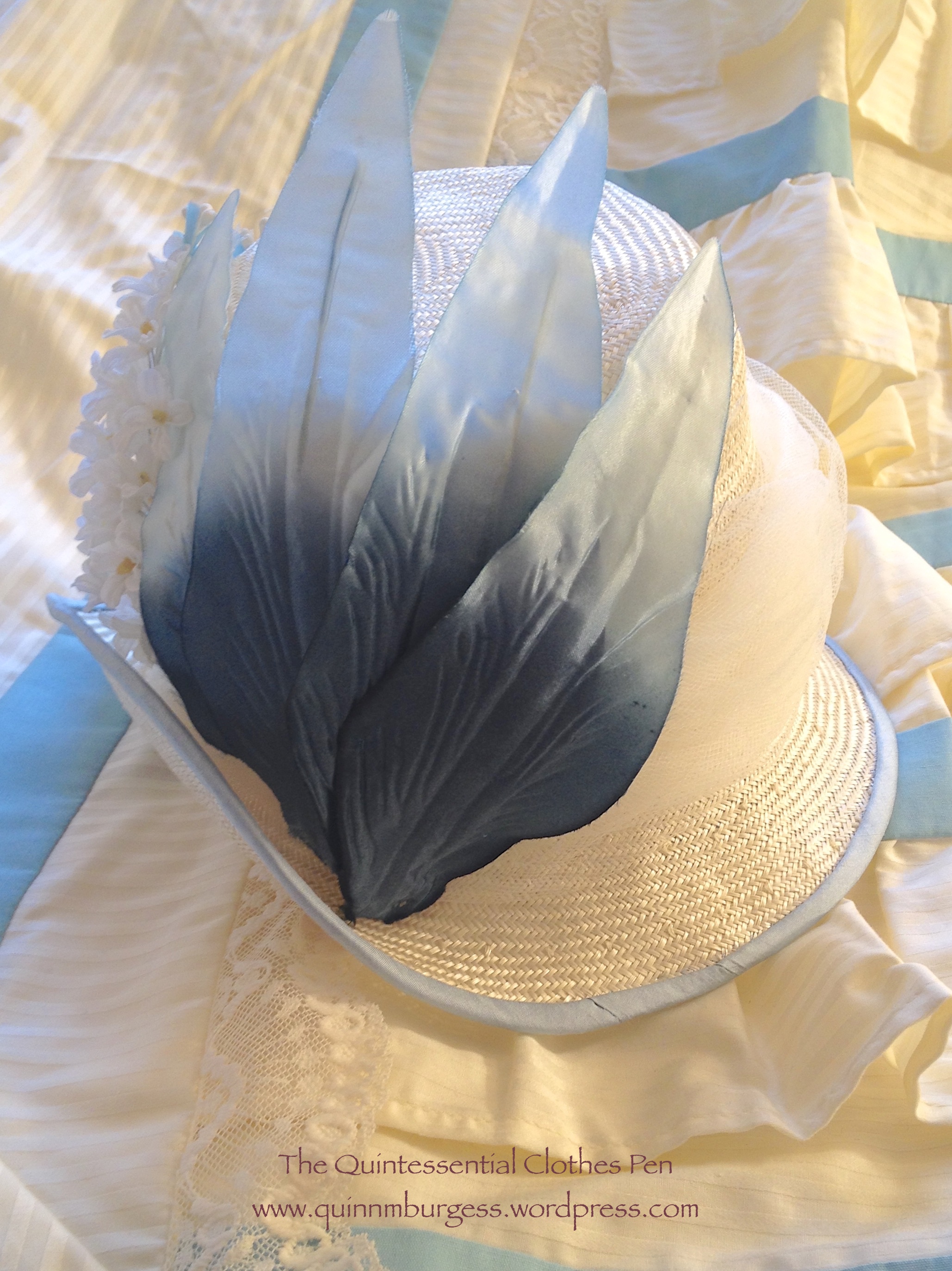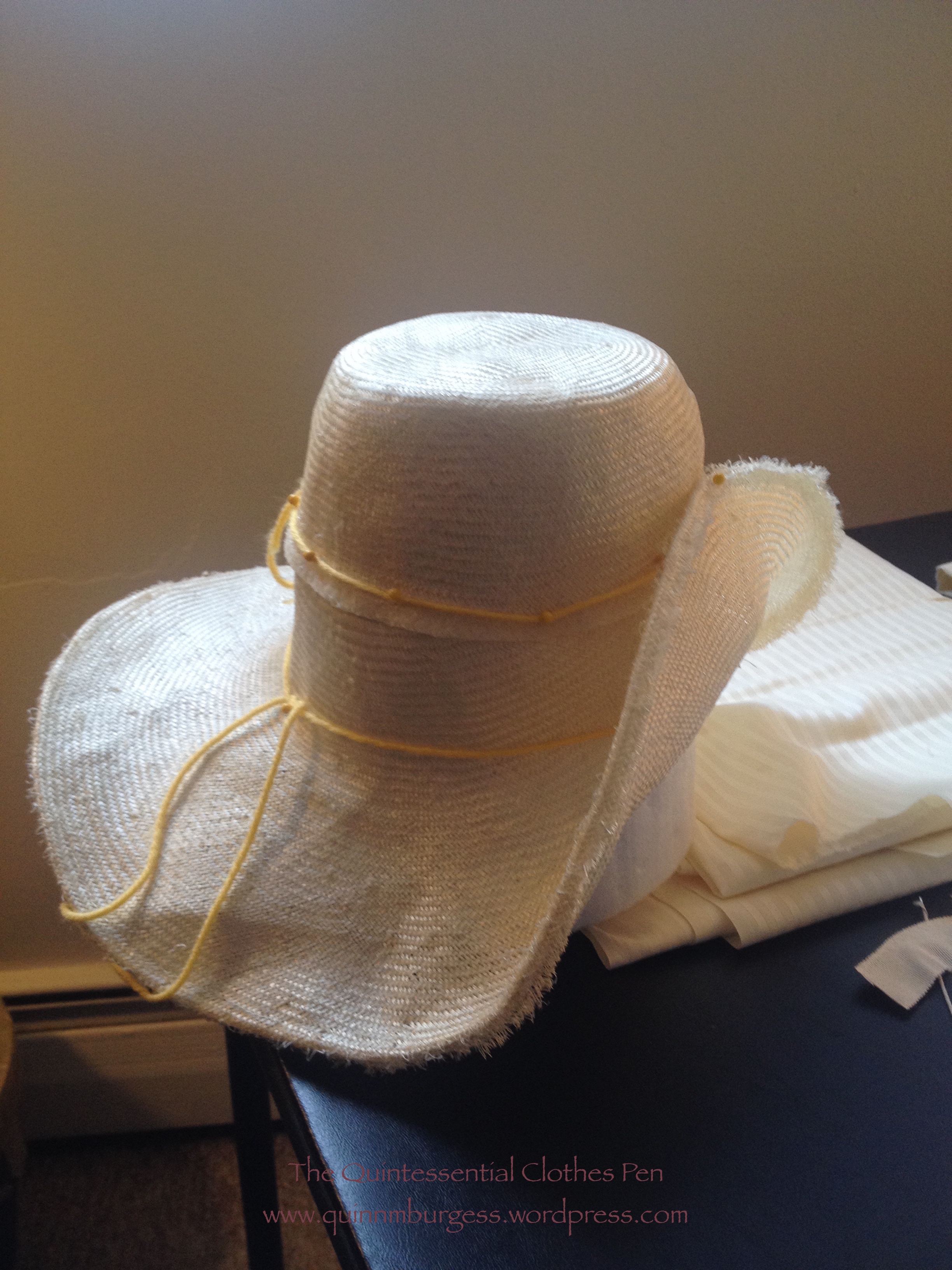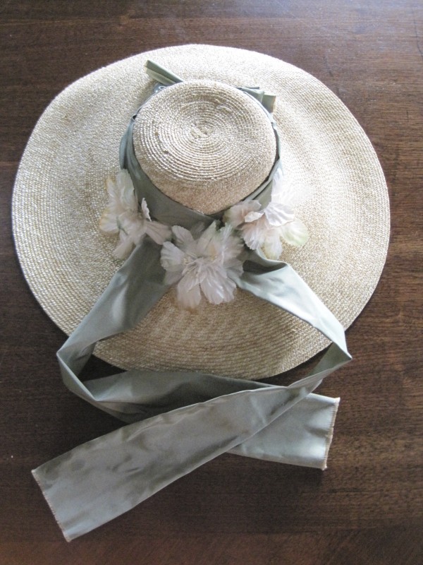 I started with this modern ‘straw’ hat from eBay. I say ‘straw’ because the fiber is really plastic rather than any sort of natural material… but I digress. The price was good and I thought white would be a nice neutral for my 1920s summer wardrobe. But the crown on this hat was soooo tall! 5″! It came way down over my eyebrows and combined with the floppy brim it was not a great look nor was it historical. I think I tried to wear it a few years ago but was displeased with the shape. The only bonus is that it squishes well and pops right back into shape–that’s great for packing! (As a side note, in trying to find the link for the hat I realized I ordered this back in 2015… it only took me a few years to make it something I was really pleased with!)